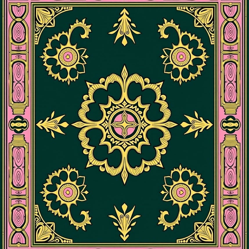 Gothic Revival Garden with Intricate Fleur de and Laurel Borders(Green)