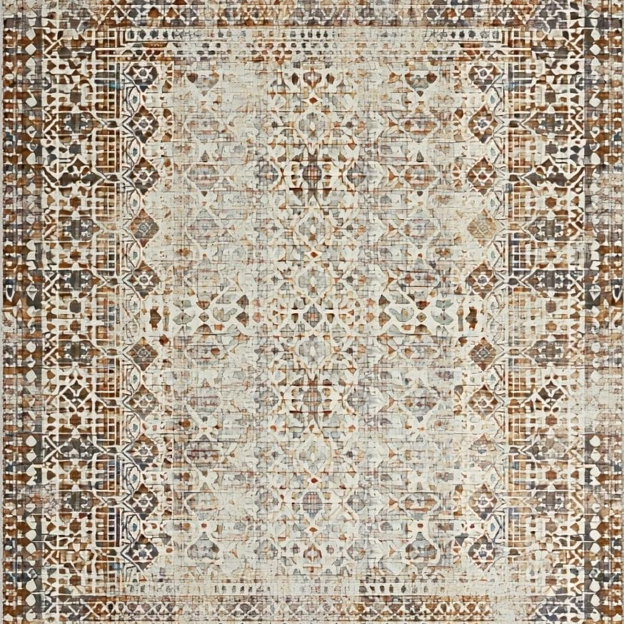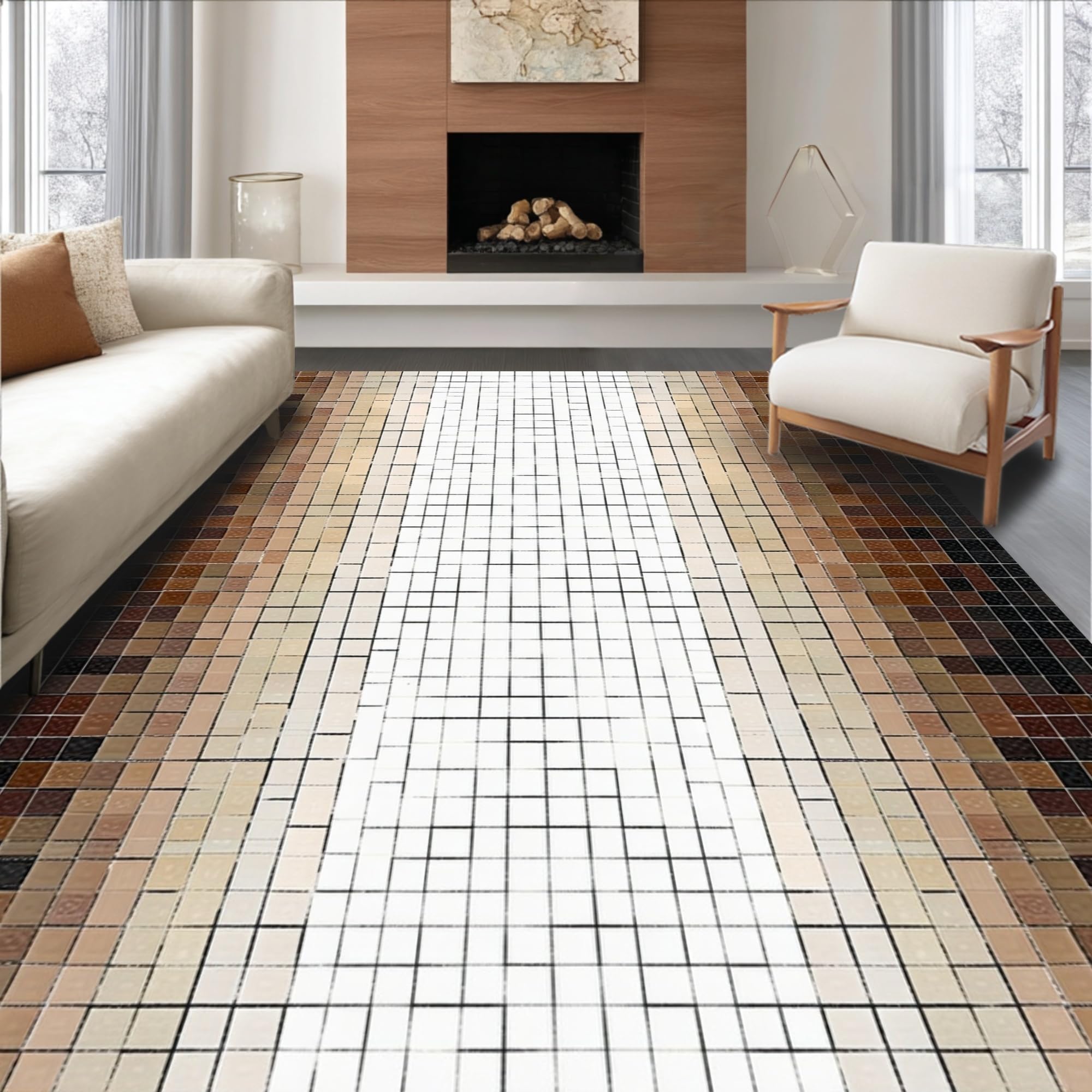 Artistic Mosaic Tile Area with Symmetric Brown Beige Gradient Blocks(Beige)