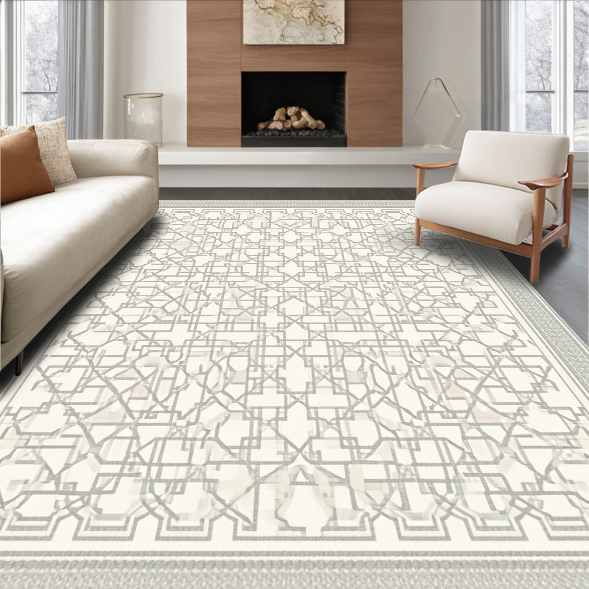 Heritage Trellis Area Featuring Neutral Toned Geometric Lattice(Beige)
