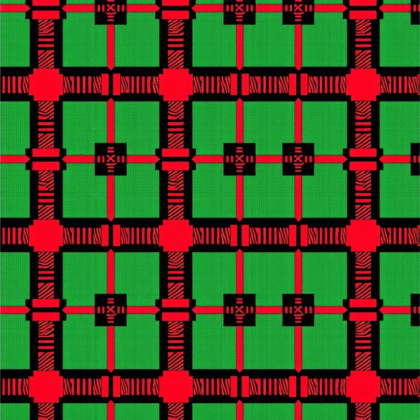 Holiday Tartan Interlocking Grid with Nordic Festive Details(Red)