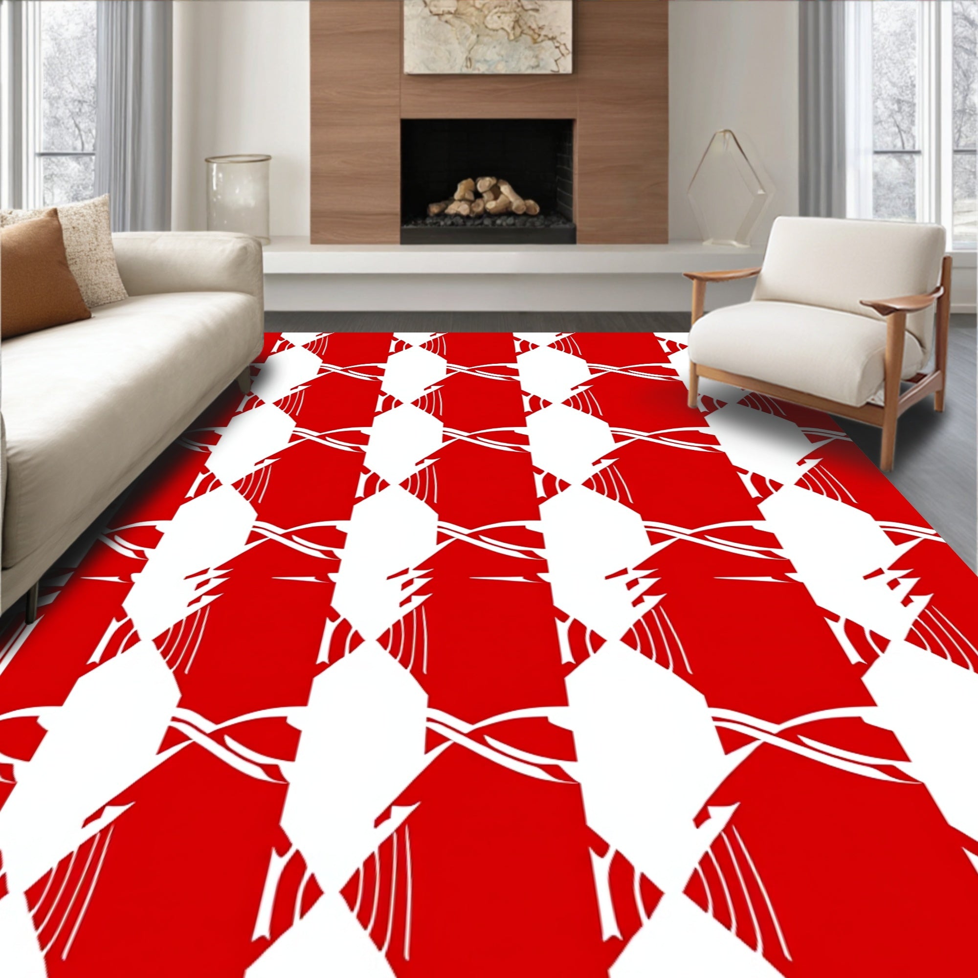 Holiday Tartan Motif Floor Design(White)