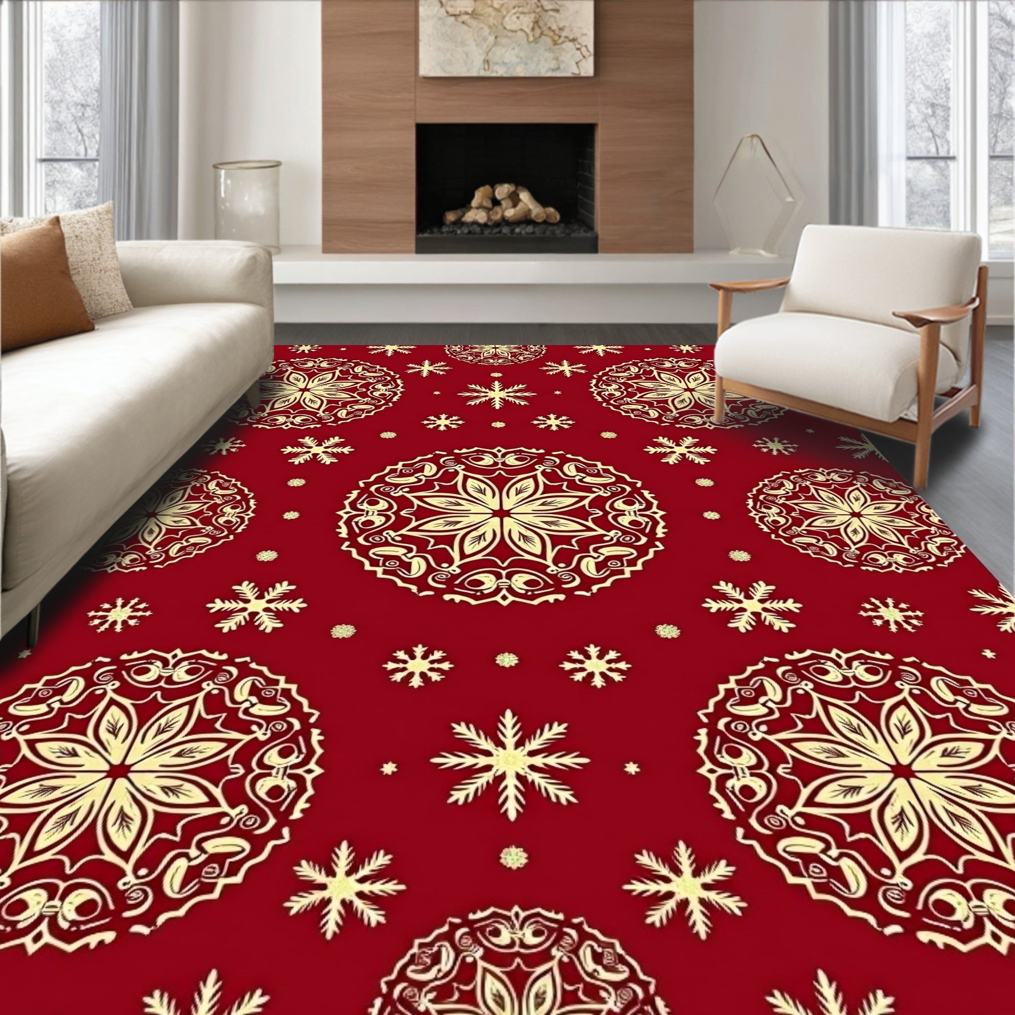 Holiday Starburst Design Area Featuring Crystalline Winter(Beige)