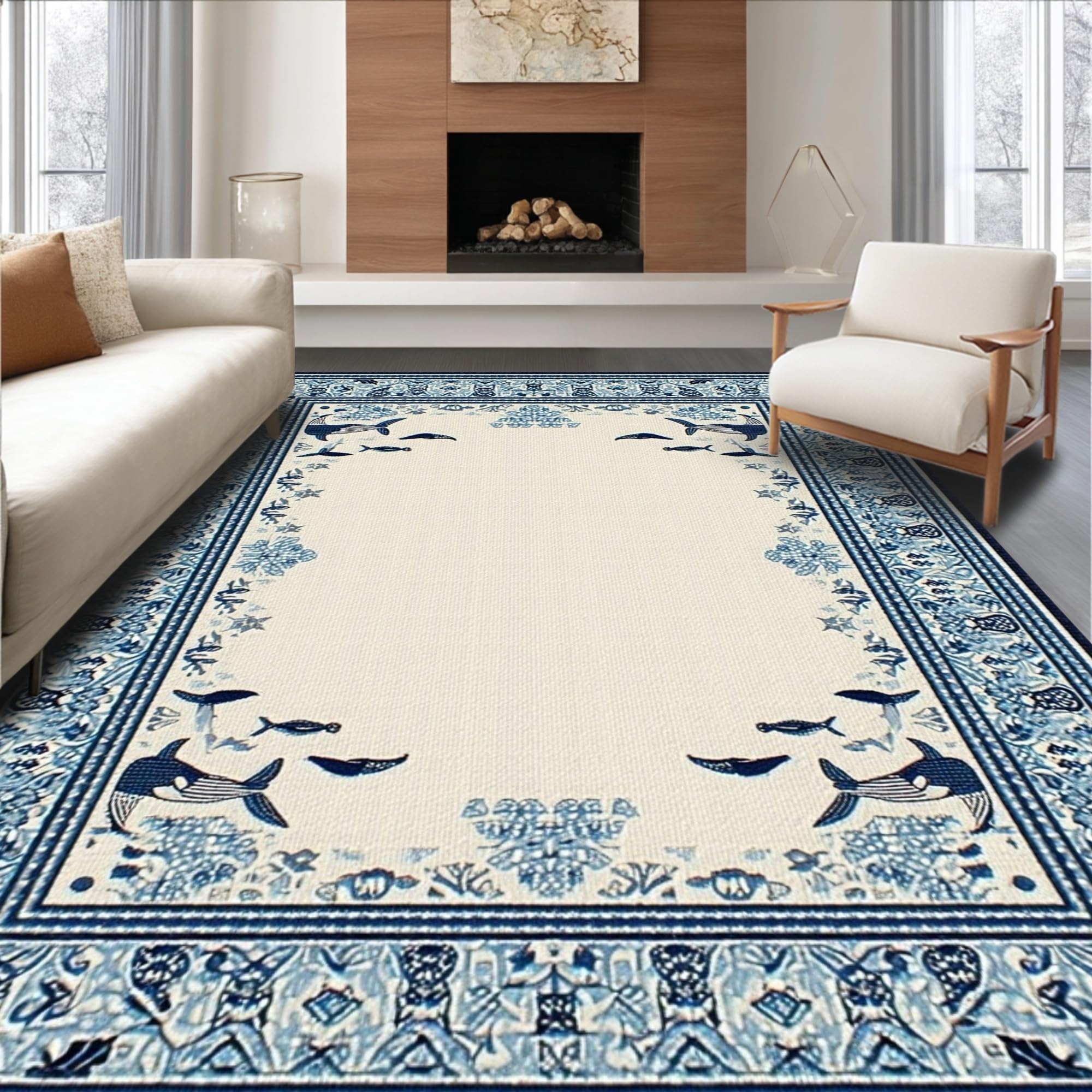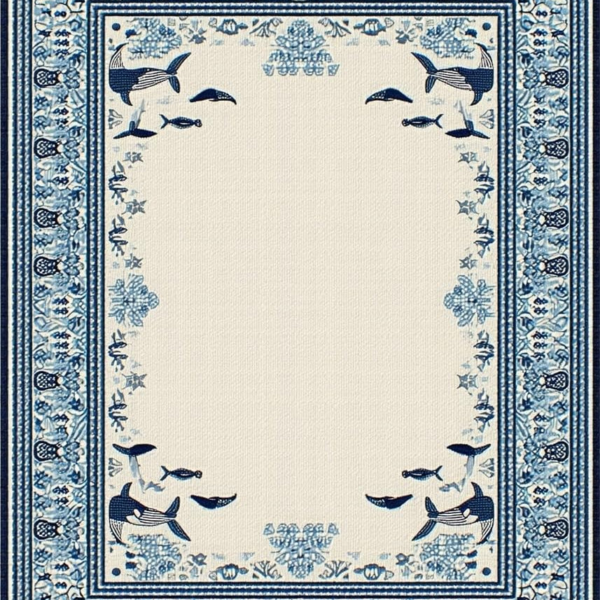 Artistic Ocean Wave Area with Vintage Trellis Design Elements(Blue)