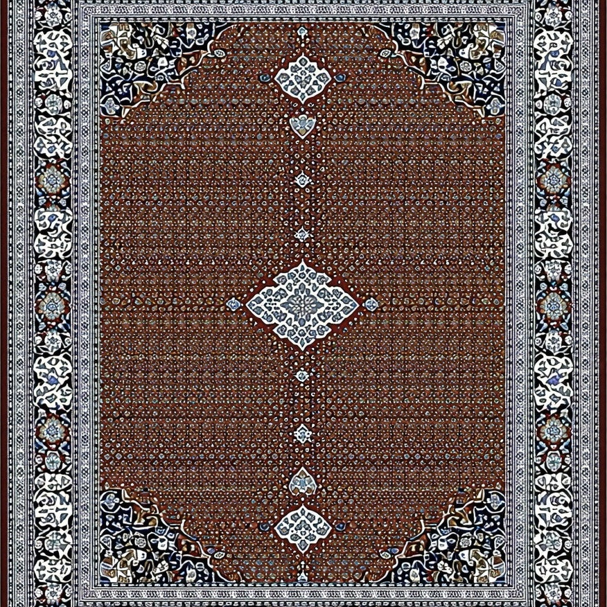 Intricate Geometric Spotted Design Area with Rich Brown and Silver Accents(Brown)