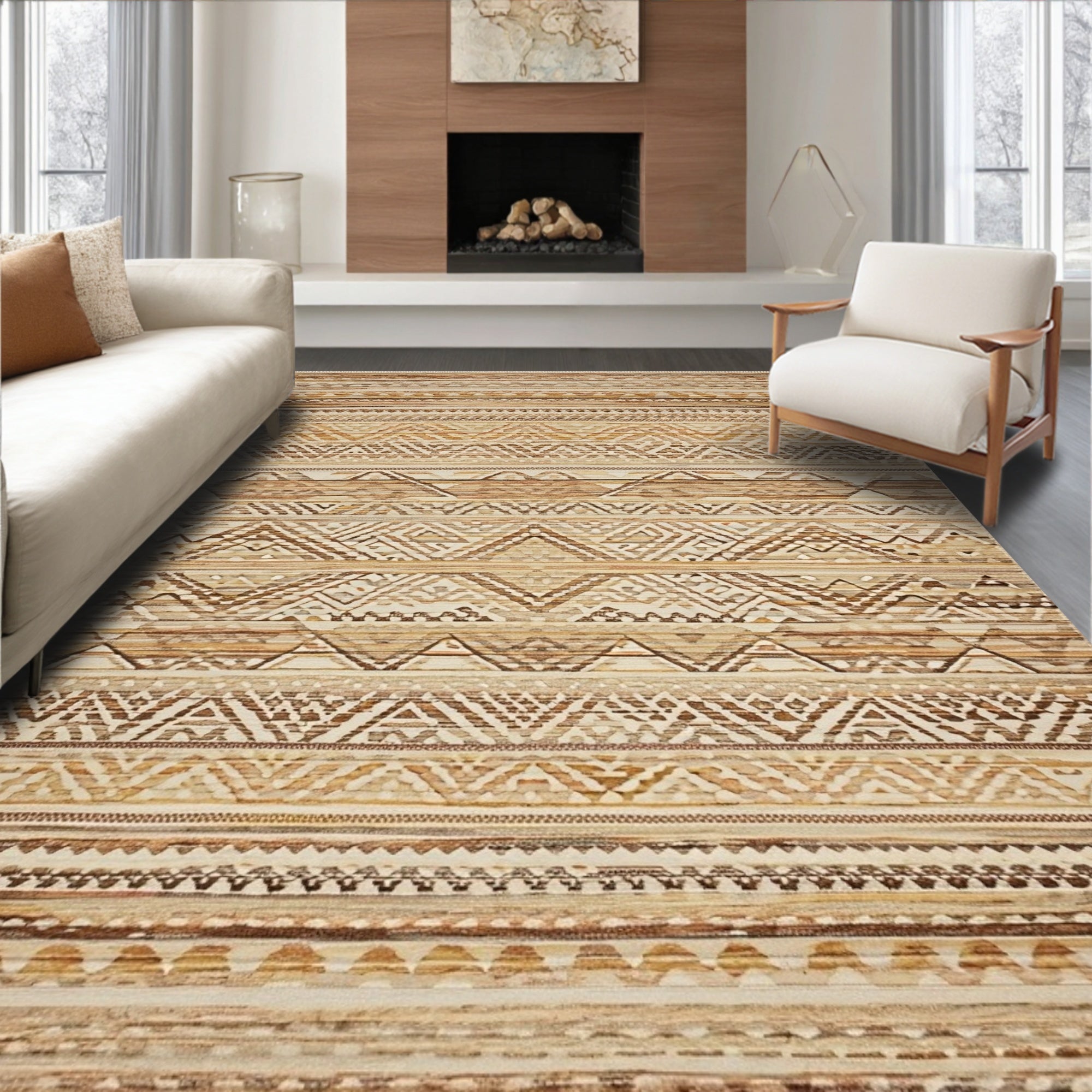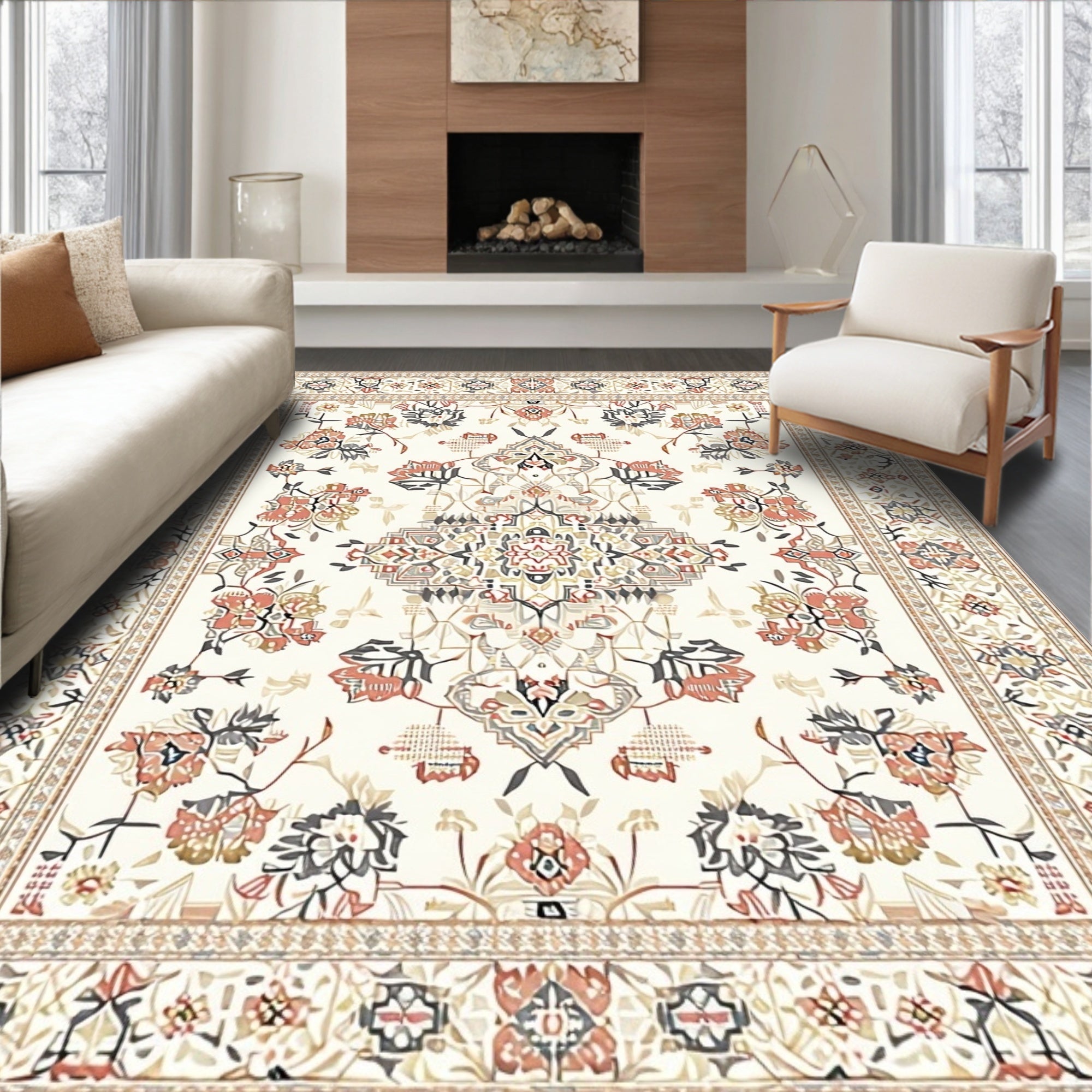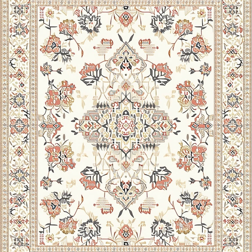 Intricate Geometric Floral Area with Smoke and Beige Motifs(Beige)