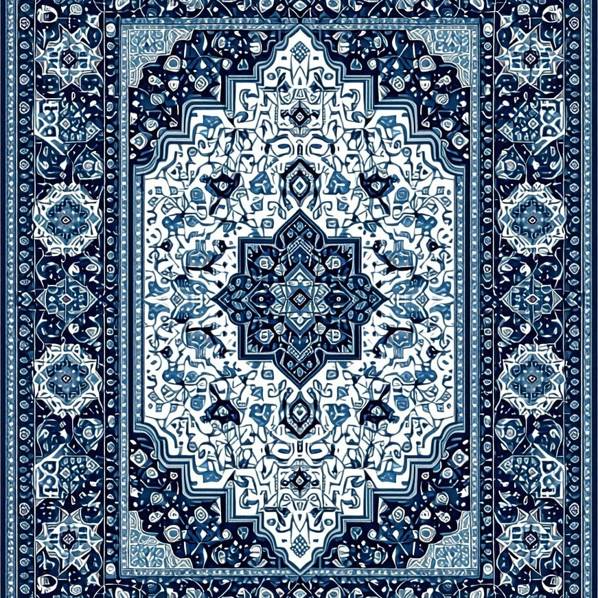 Intricate Geometric Design Area With Blue And Silver Accents(Blue)