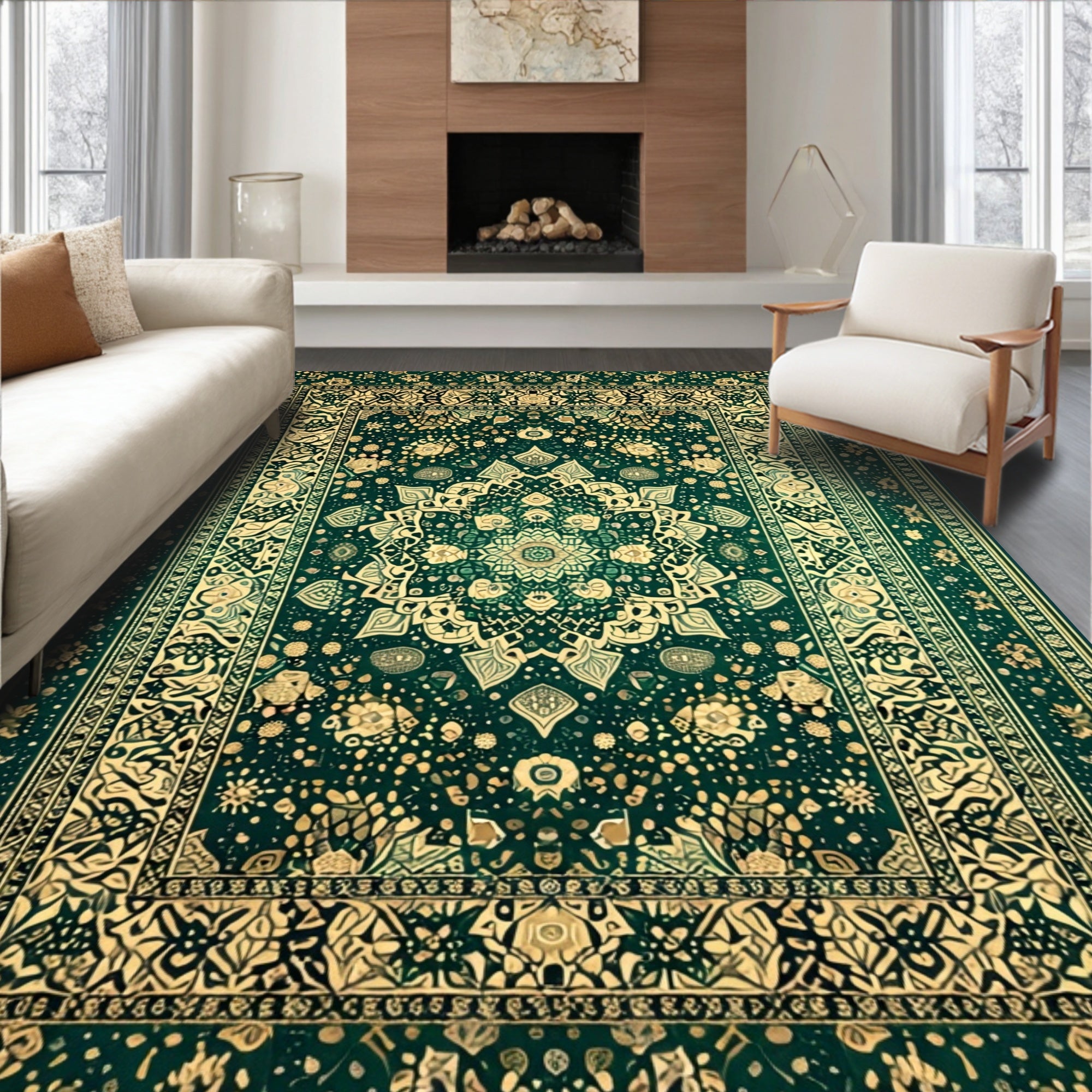 Intricate Geometric Spotted Area Featuring Motifs(Green)