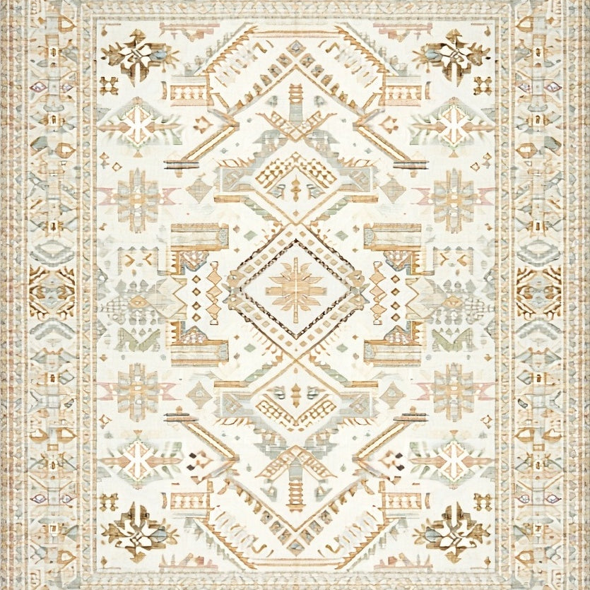Ivory Beige Geometric Patterned Simple Care Non Shedding(Beige)