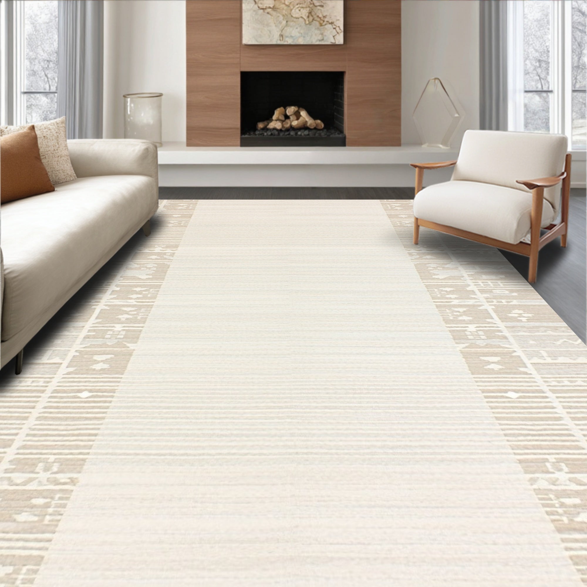 Ivory Beige Area featuring Subtle Woven Texture and Modern Lines(Beige)