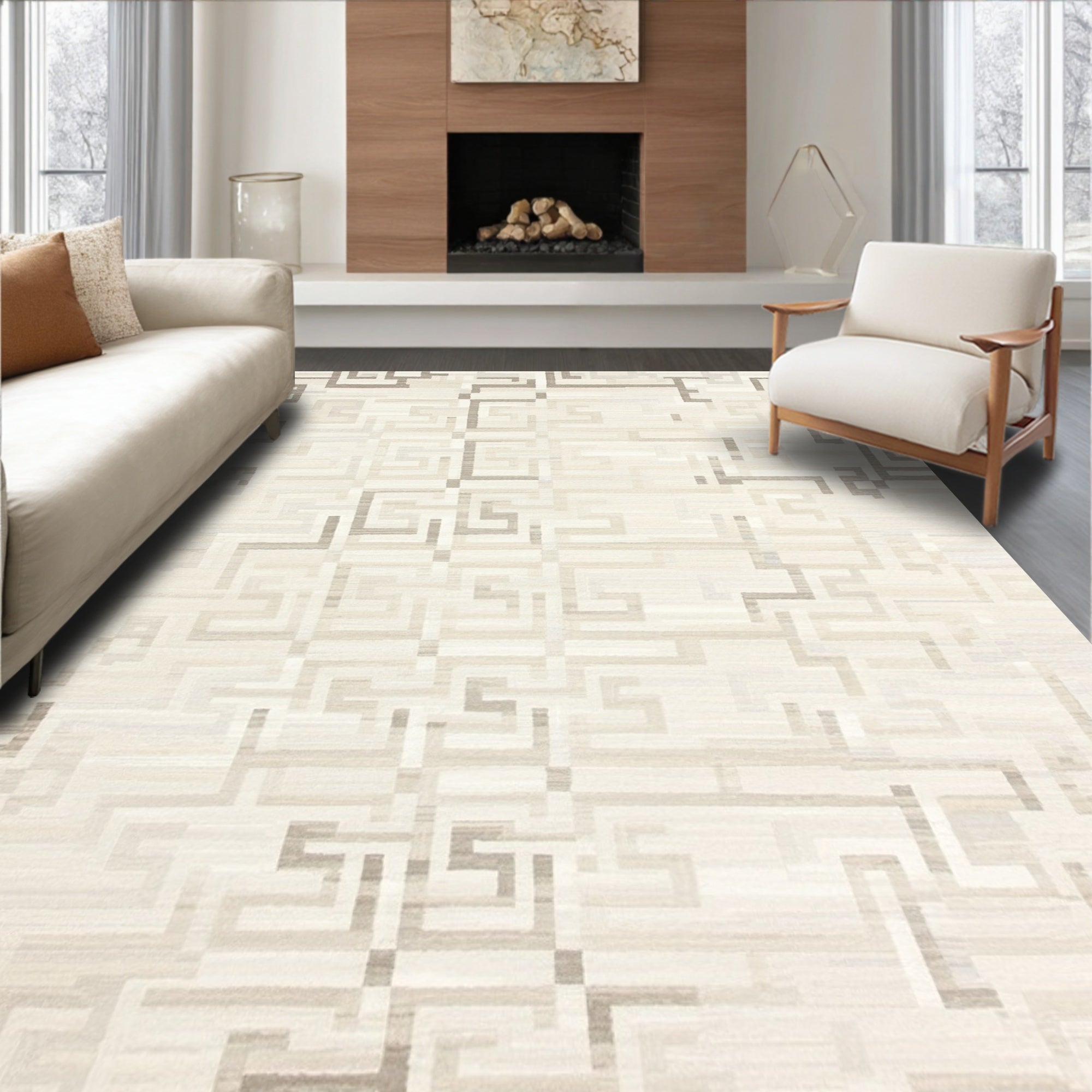 Ivory Beige Modern Geometric Harmony for Stylish Spaces(Beige)