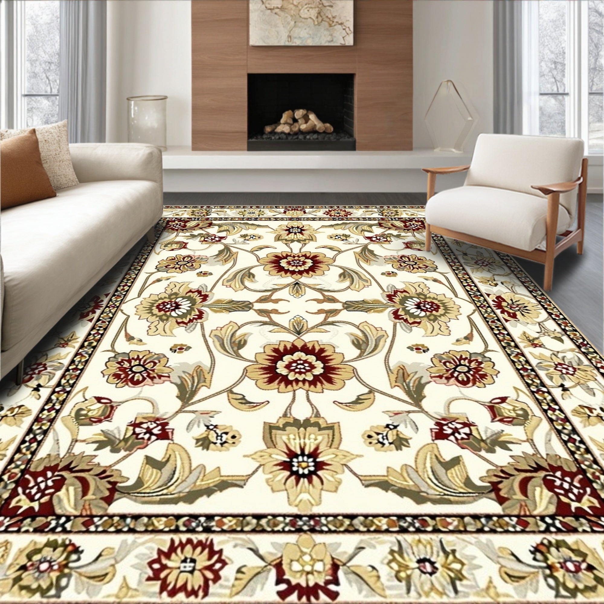 Jacobean Inspired Botanical for Contemporary Home Floor Cover(Beige)