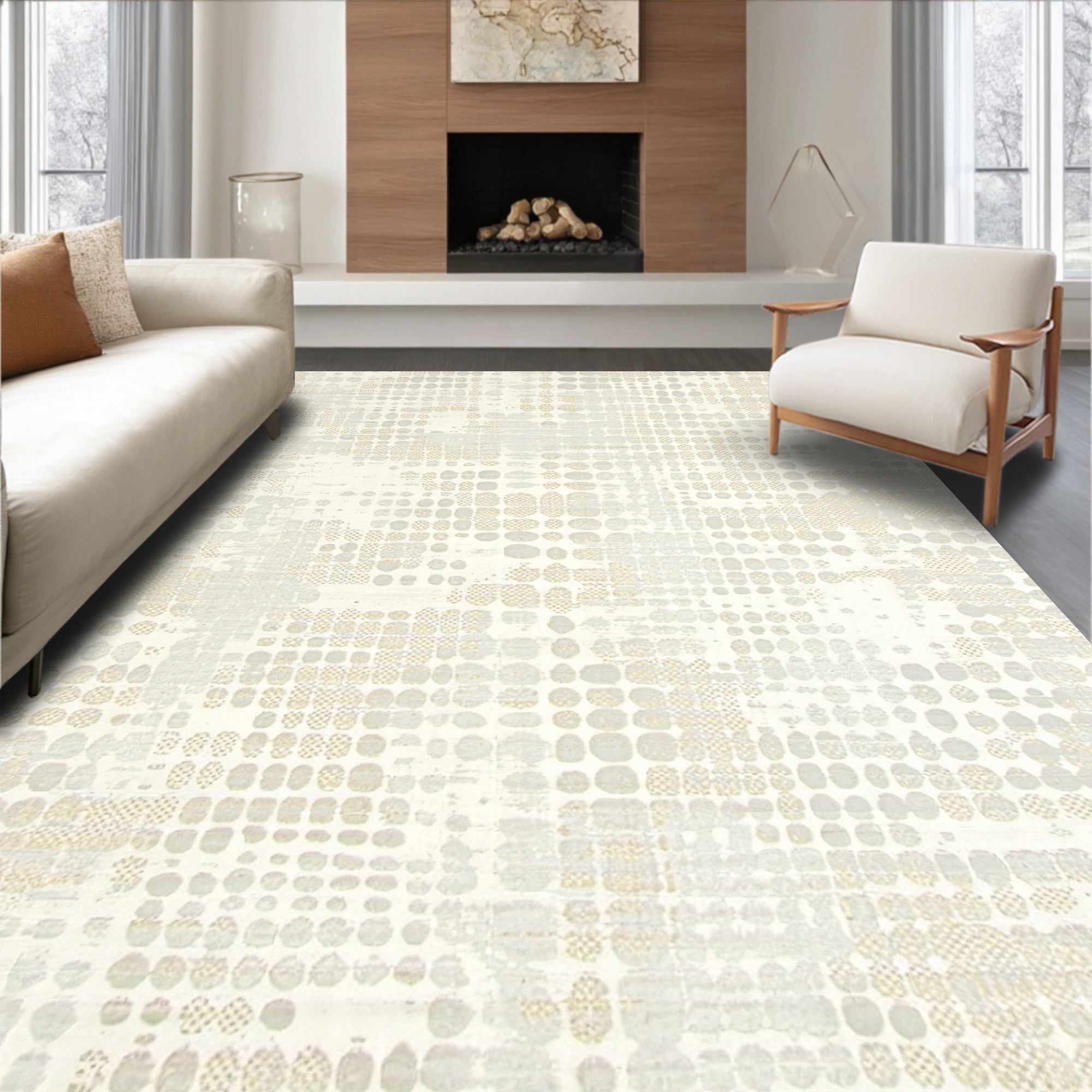 Java Blend Geometric Area with Earthy Tones and Bold Design(Beige)
