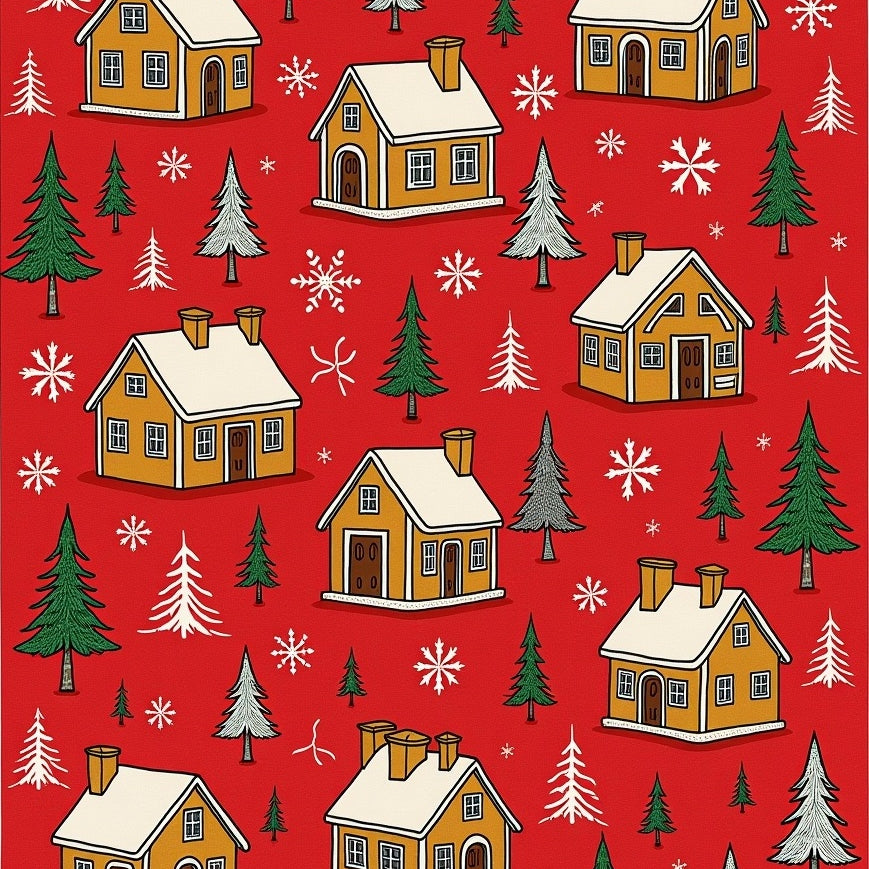 Jolly Winter Cottage Evergreen Forest(Red)