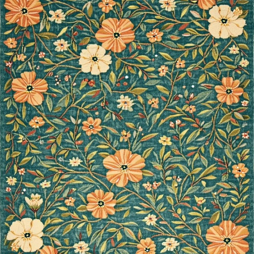Artistic Radial Symmetry Bungalow Floral Trellis(Blue)