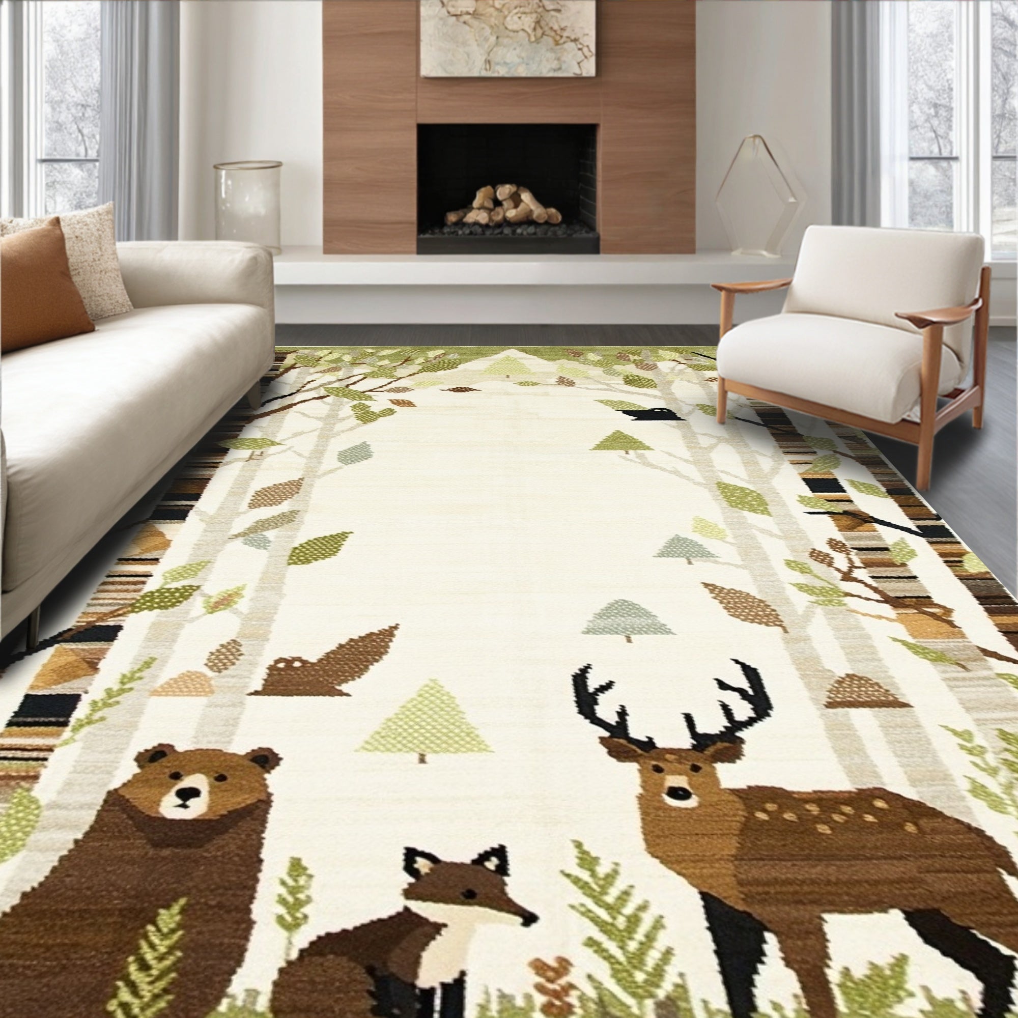 Kids Playroom Area Whimsical Woodland Animals(Beige)