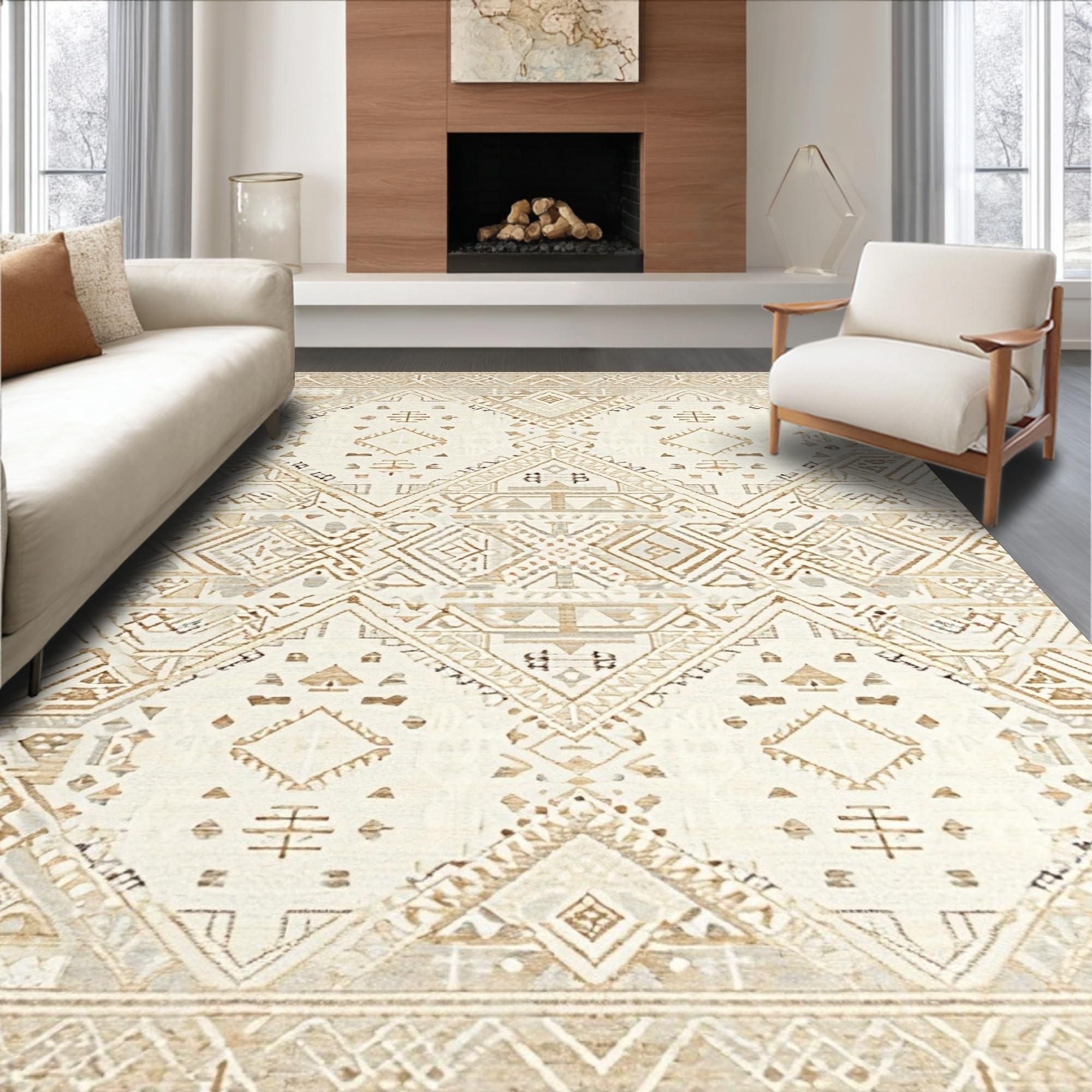 Luxora Diamond Checkered Area Sophisticated Geometric Home Decor(Beige)