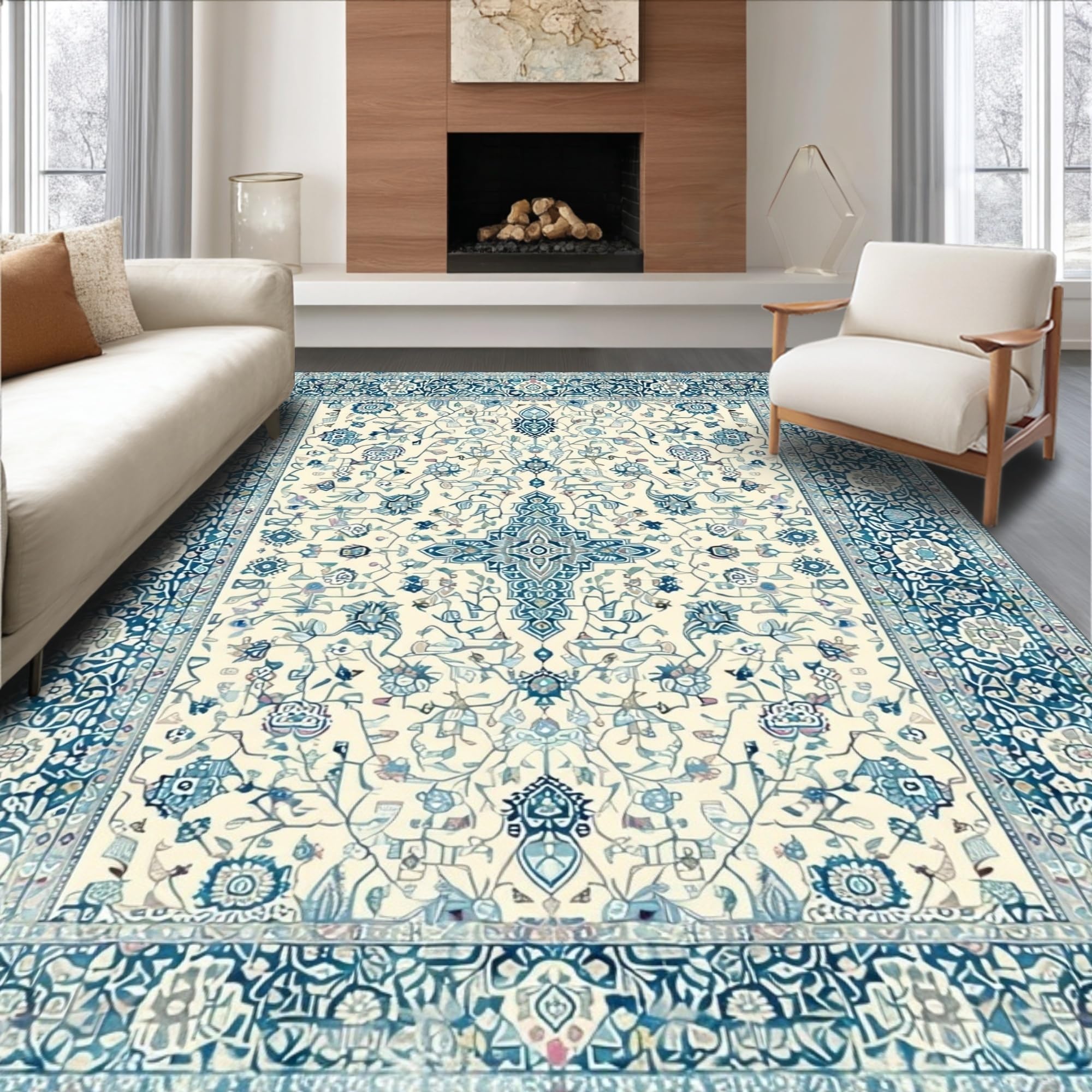 Luxurious Blue Trellis Style(Ivory)