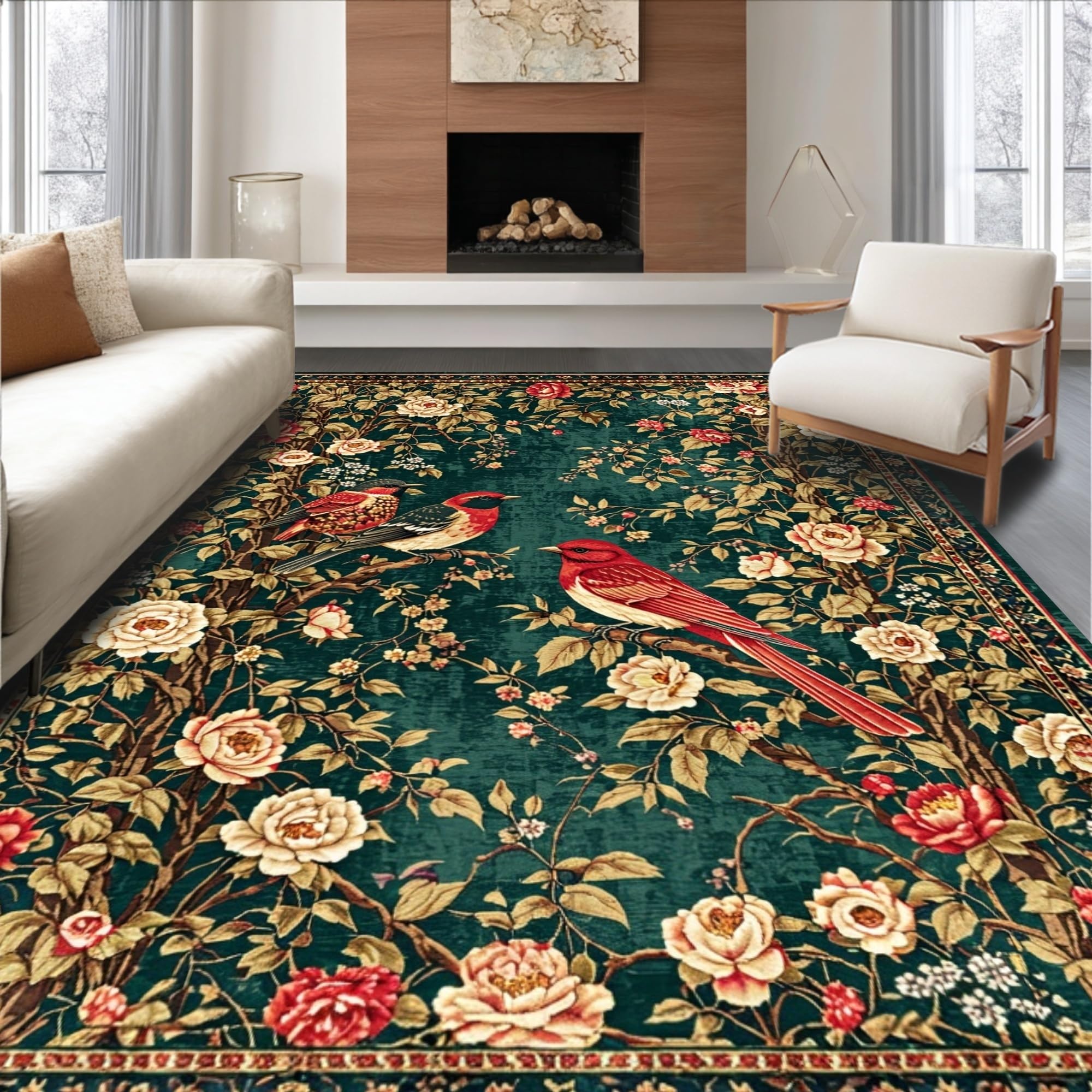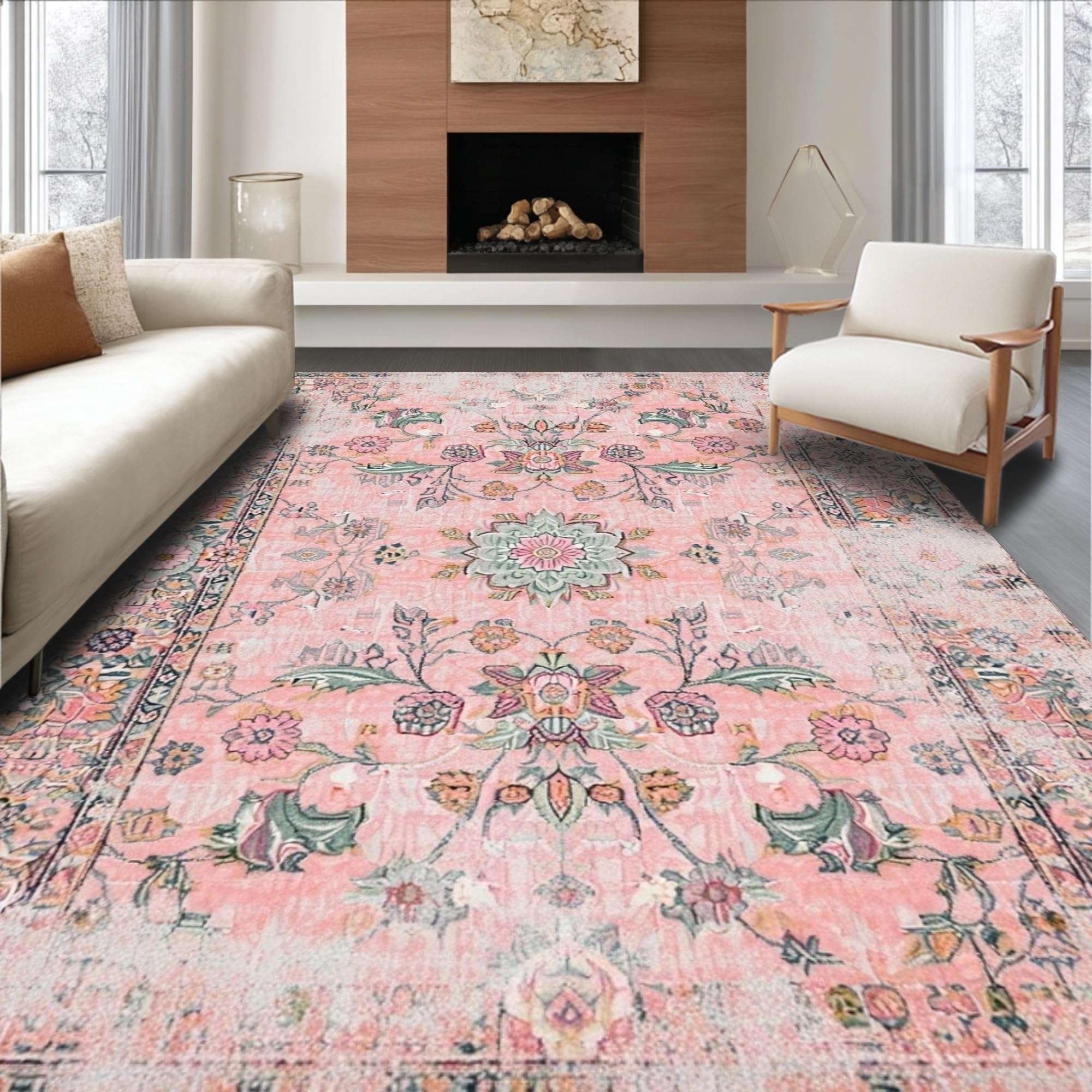 Artistic Washable Area Rug with Contemporary Red and Ivory Abstract Design(Red)