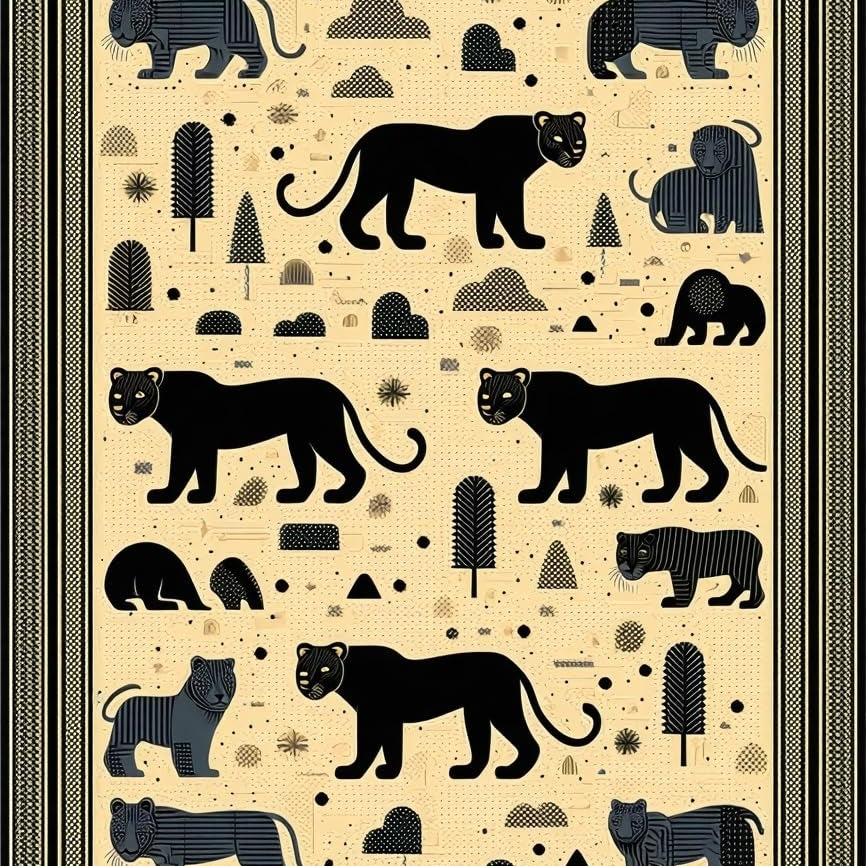 Majestic Big Cat Geometric Area Black Panther Lion Tiger Art(Beige)