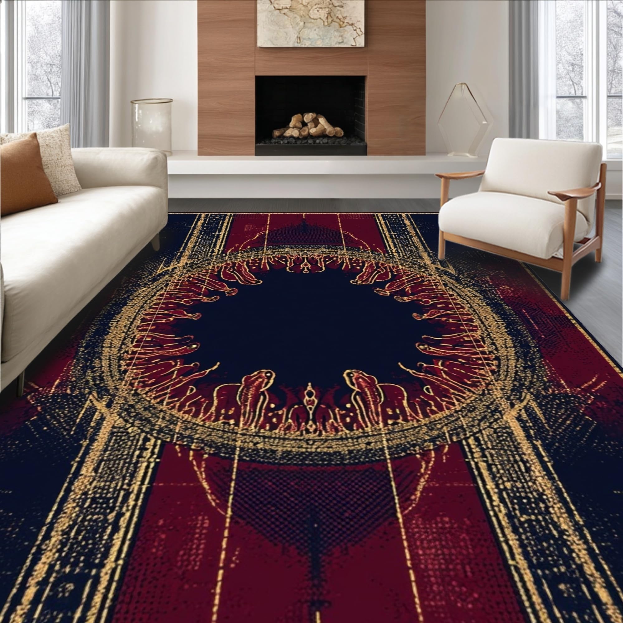 Maritime Compass Medallion Indoor Nautical Area Rug for Patio Decor(Blue)