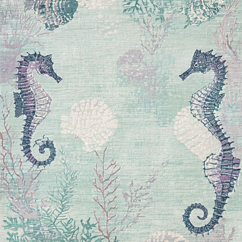 Marine Life Mosaic Featuring Blue Turtle and Coral Reef Artistic Motif(Blue)