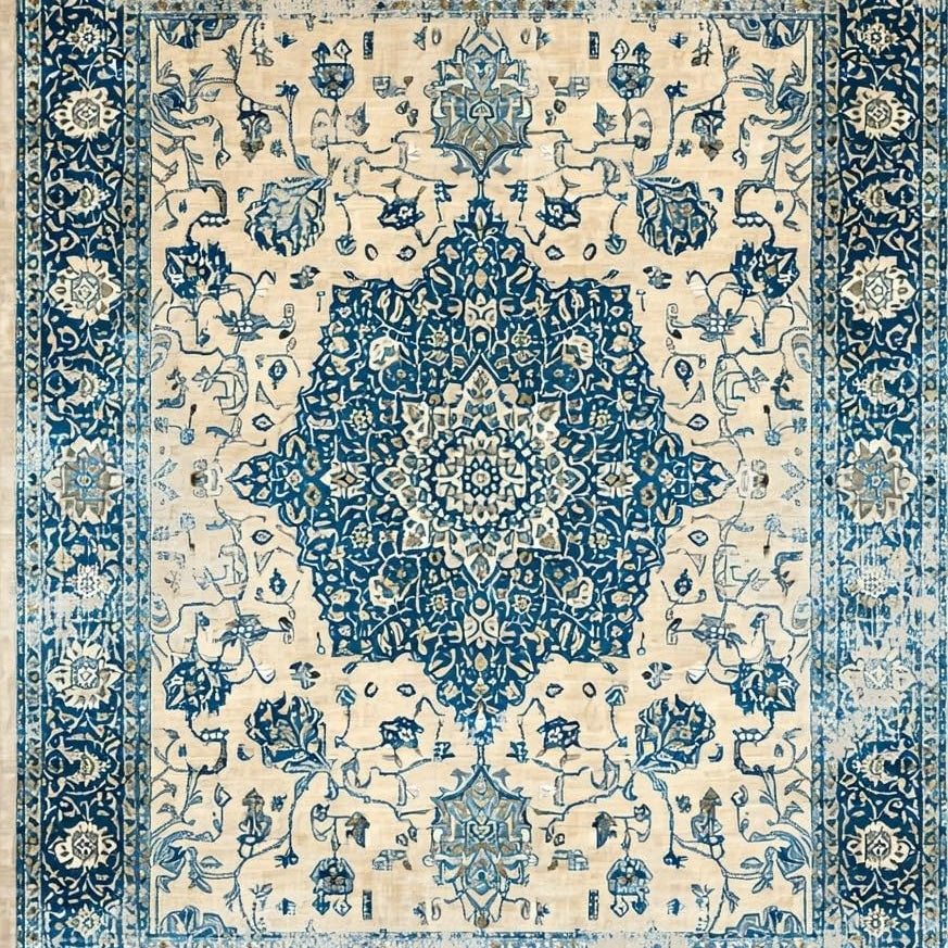 Mediterranean Charm Area with Antiqued Medallion Design(Beige)