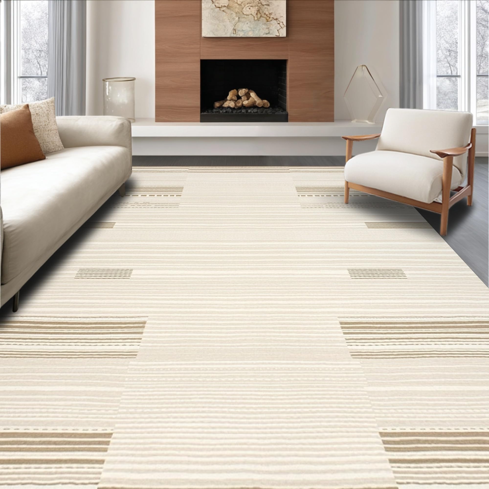 Mediterranean Inspired Beige High Low Pile Textured Geometric Shapes(Beige)