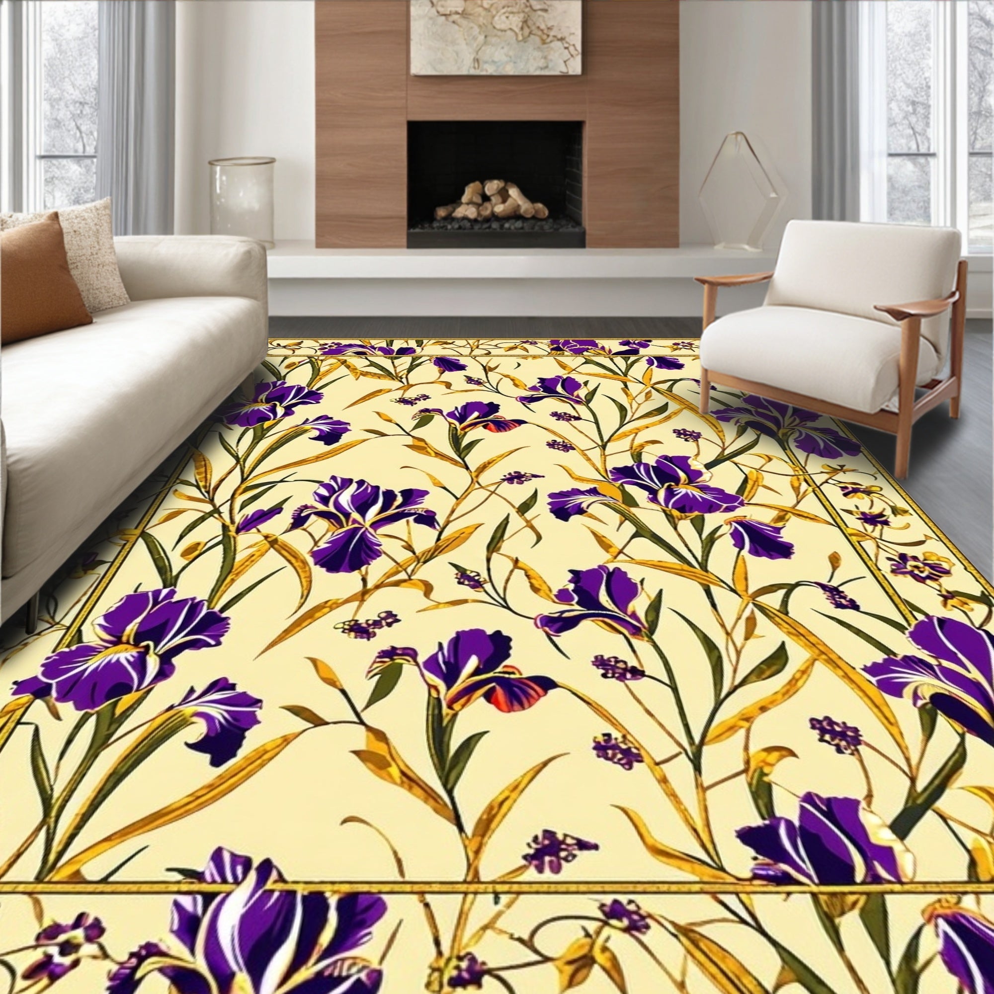 Subtle Beige Floral Accents(Beige)