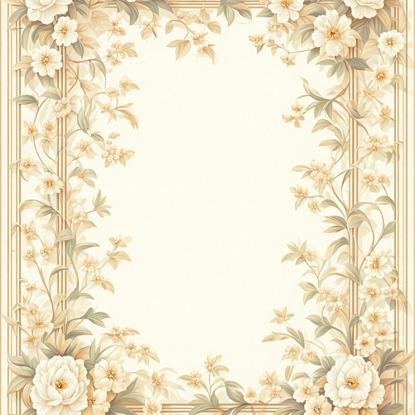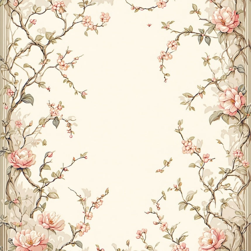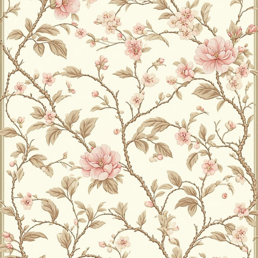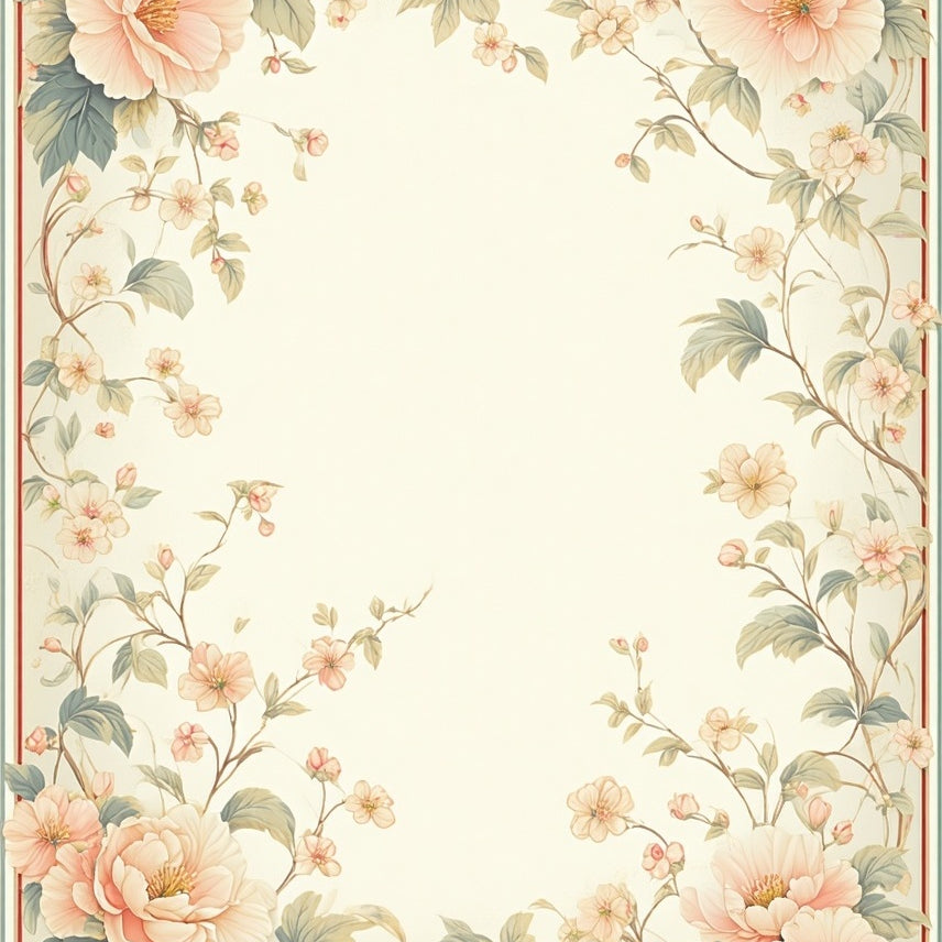 Pastel Floral Blossom with Vintage Inspired Botanical Design(Beige)