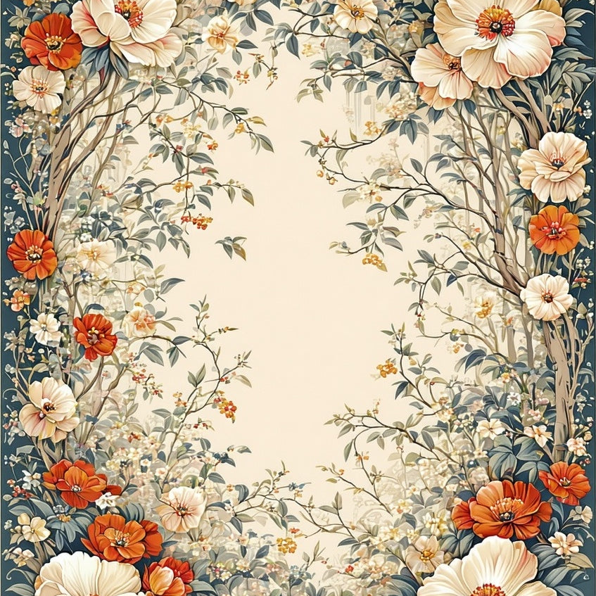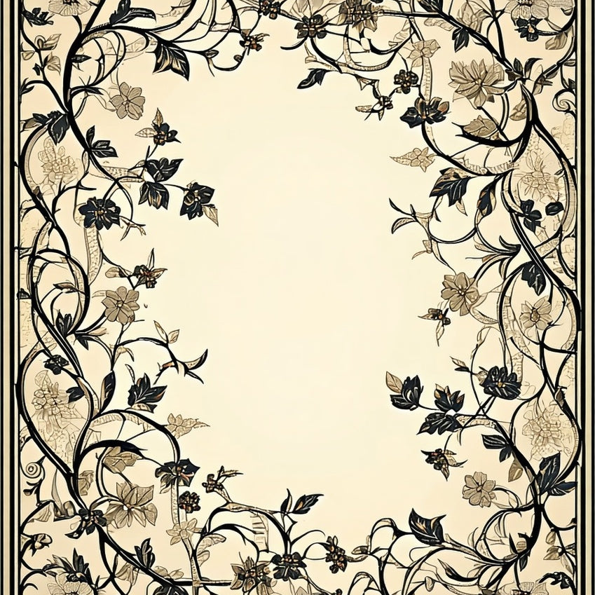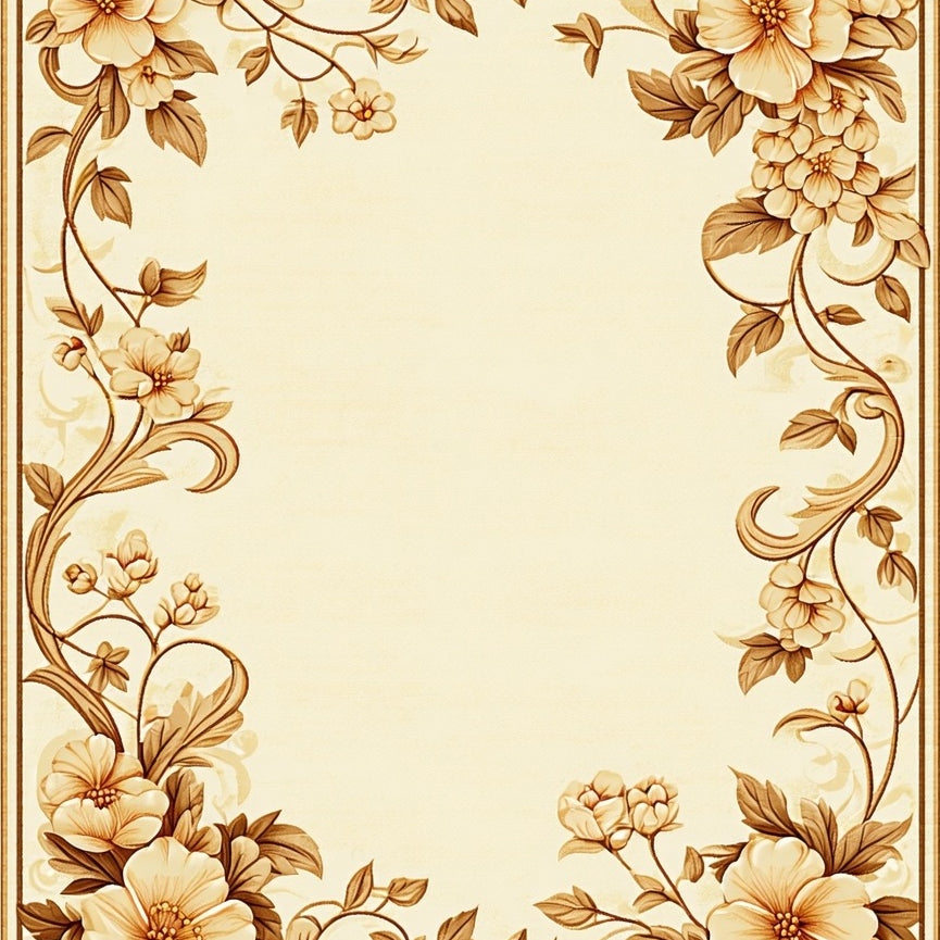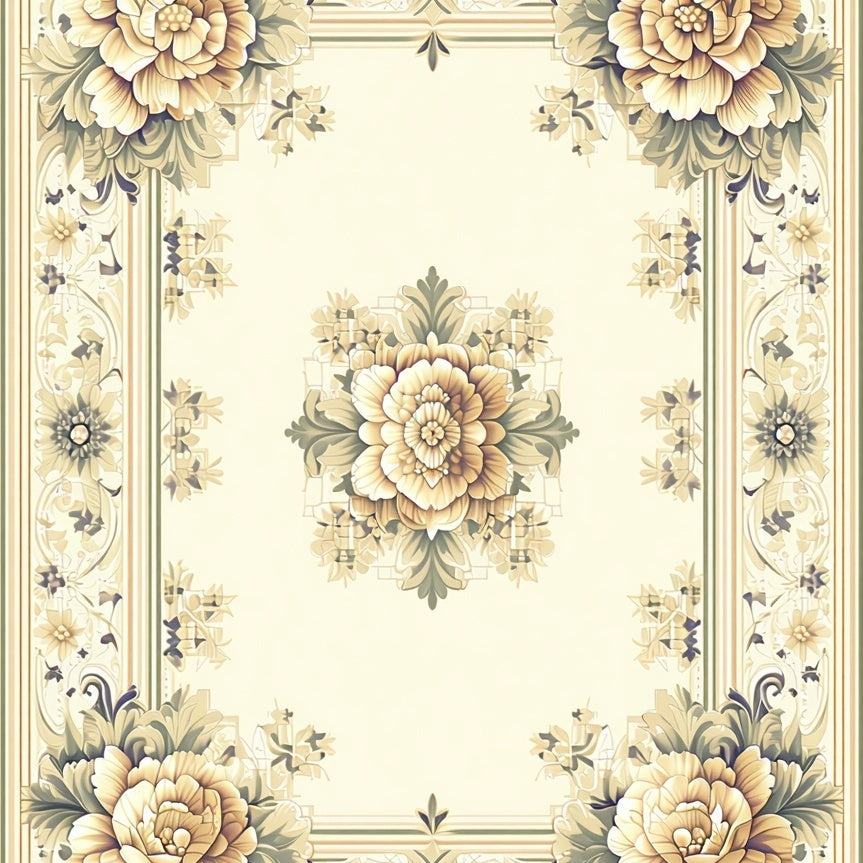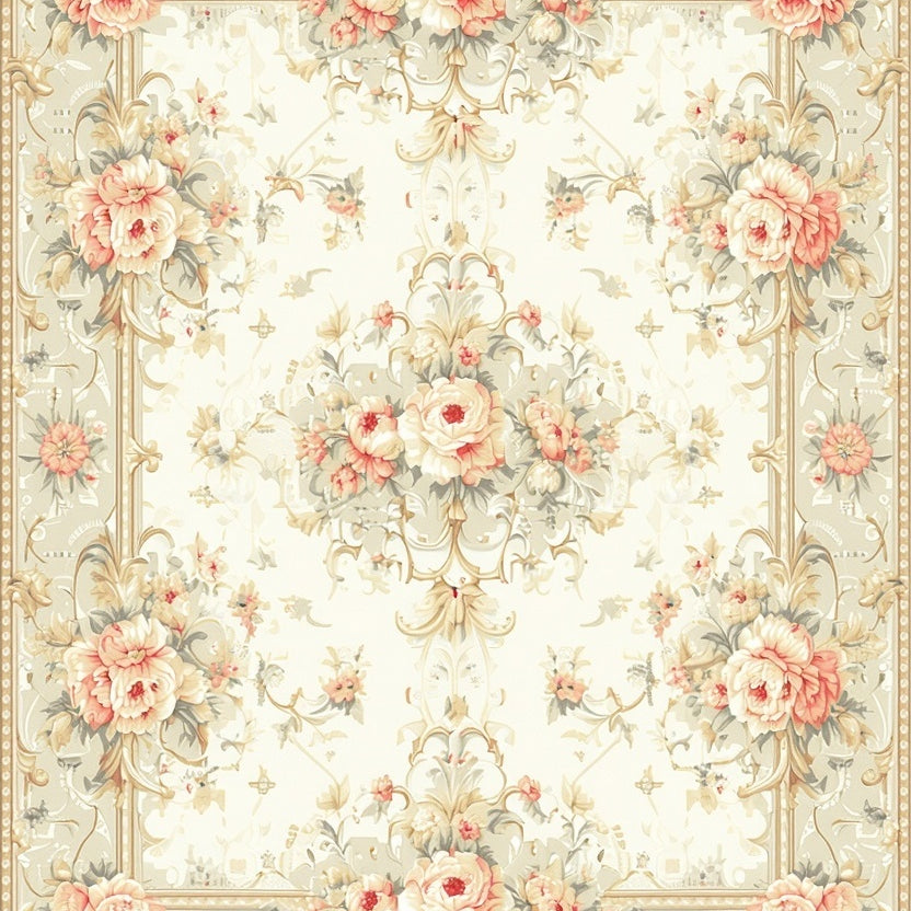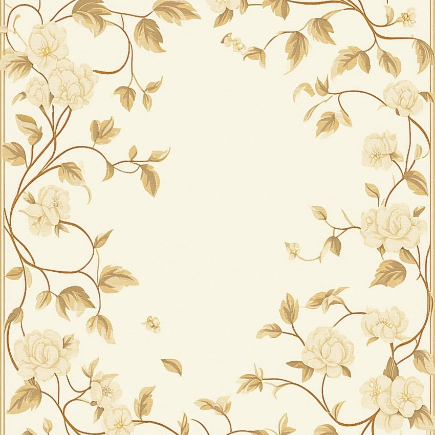 Beige with Vintage Inspired Floral Scrollwork(Beige)