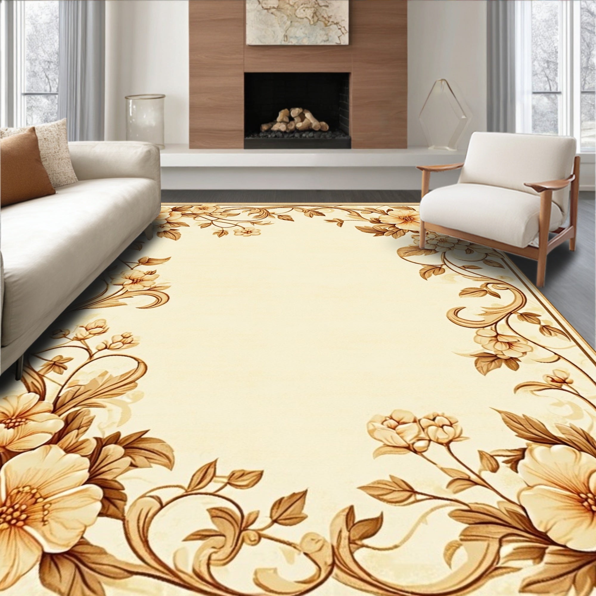 Non Slip Floral with Subtle Beige and Cream Toned Leaf Motifs(Beige)
