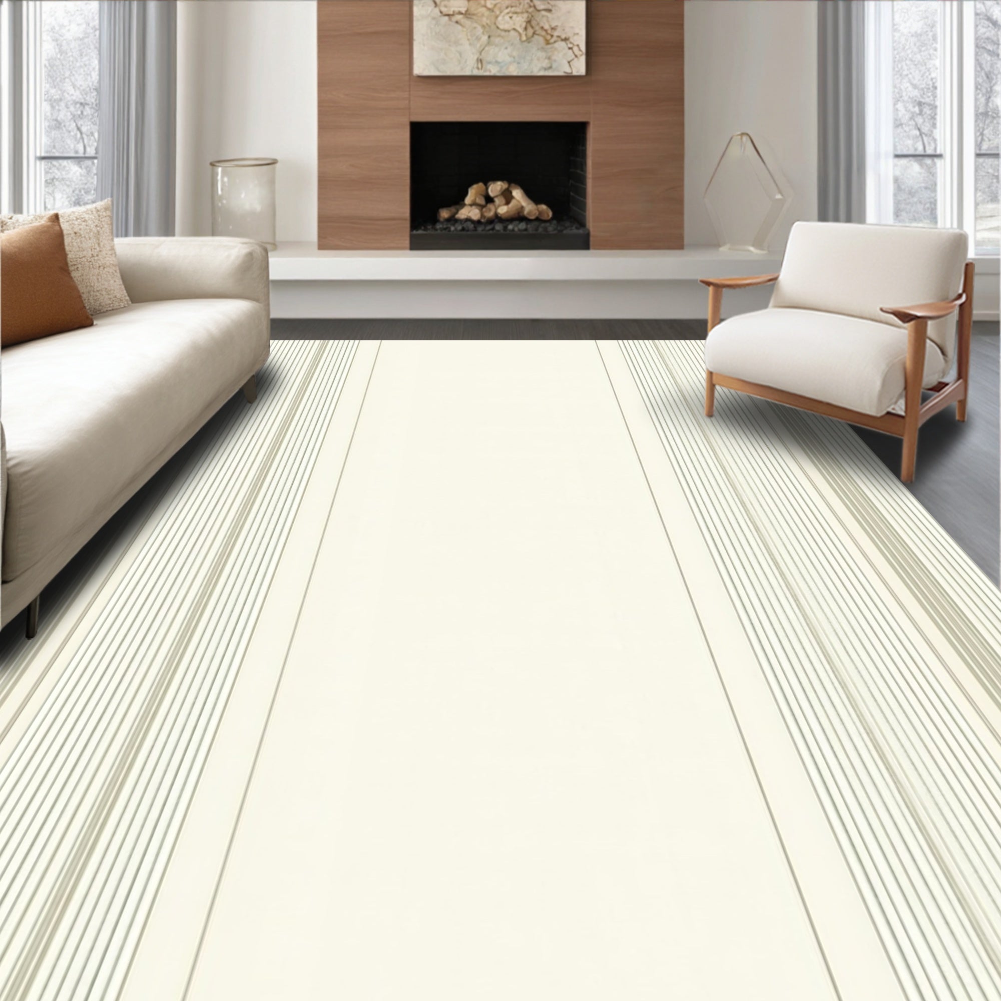 High Traffic Performance Featuring a Modern Striped Design in Beige(Beige)