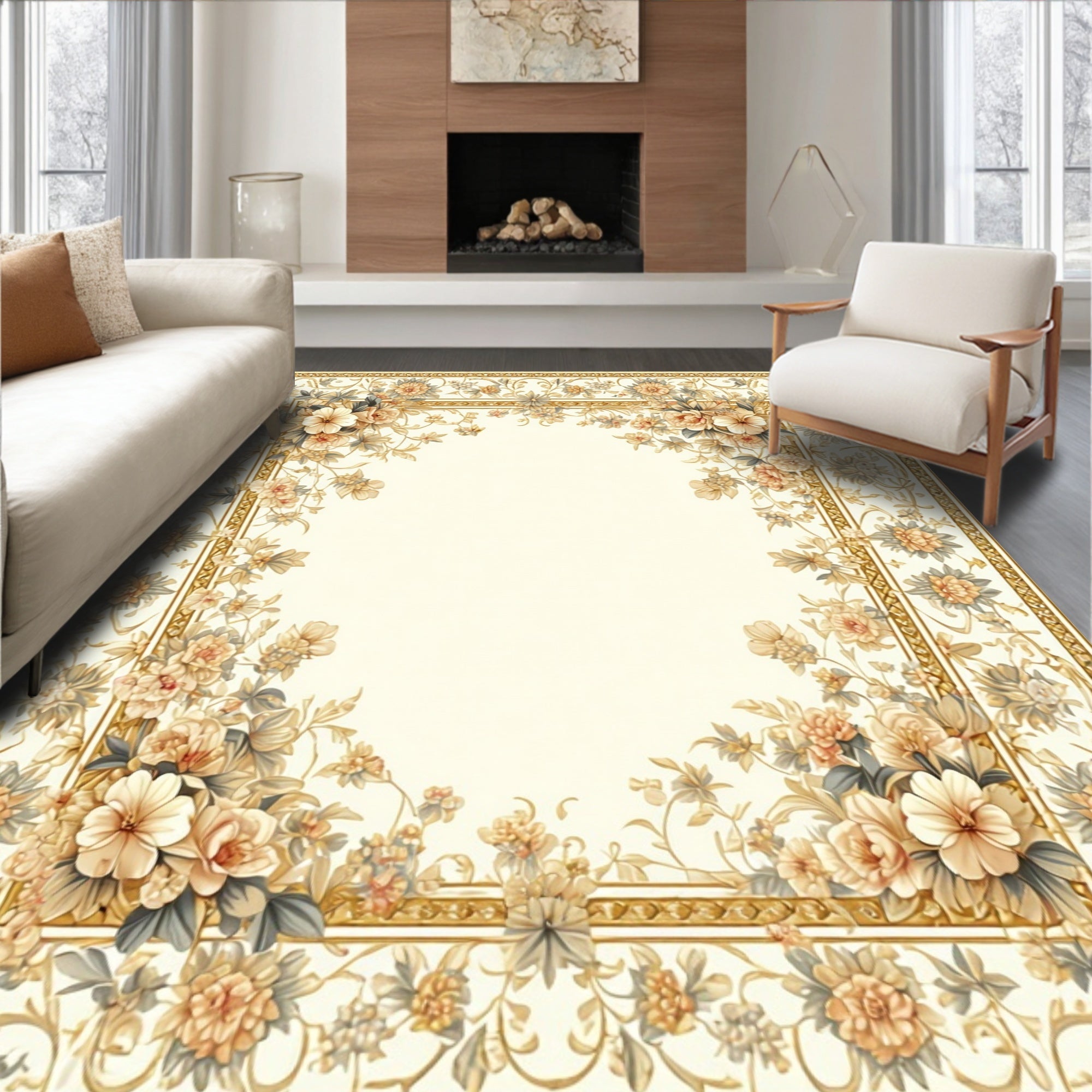 Classic Ornamental Border Elegant Non Slip Timeless Design(Beige)