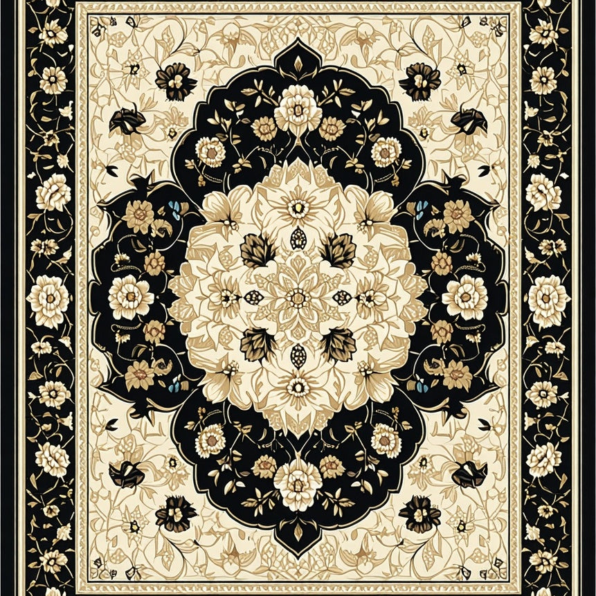 Vintage Inspired Beige and Black Floral Medallion(Beige)