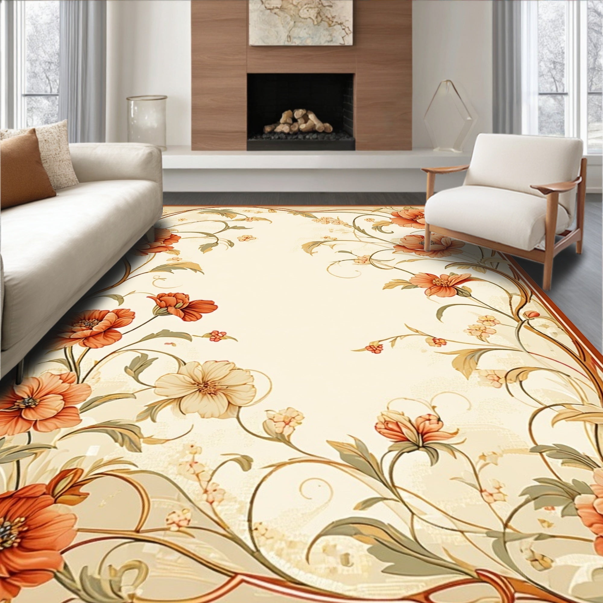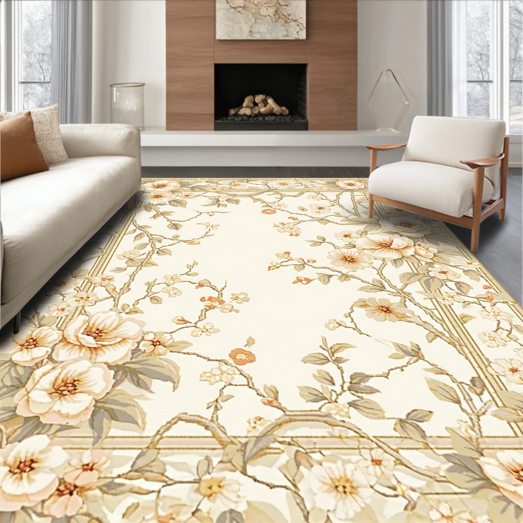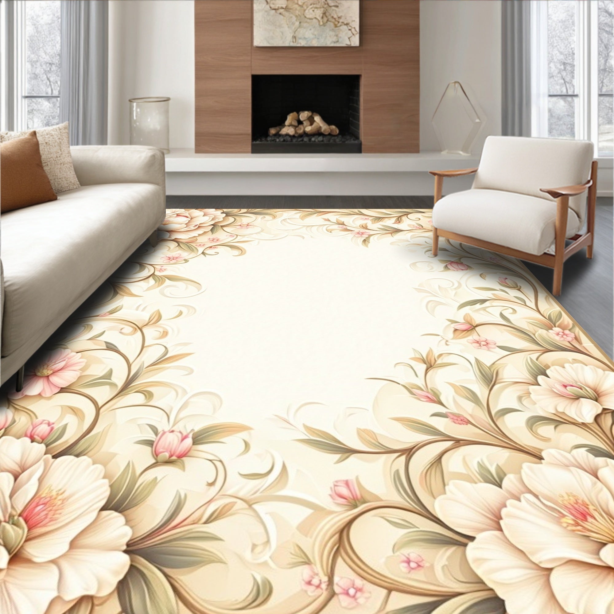 Elegant Floral Low Pile Indoor Floor Cover(Beige)