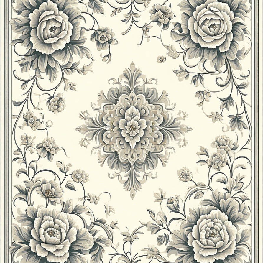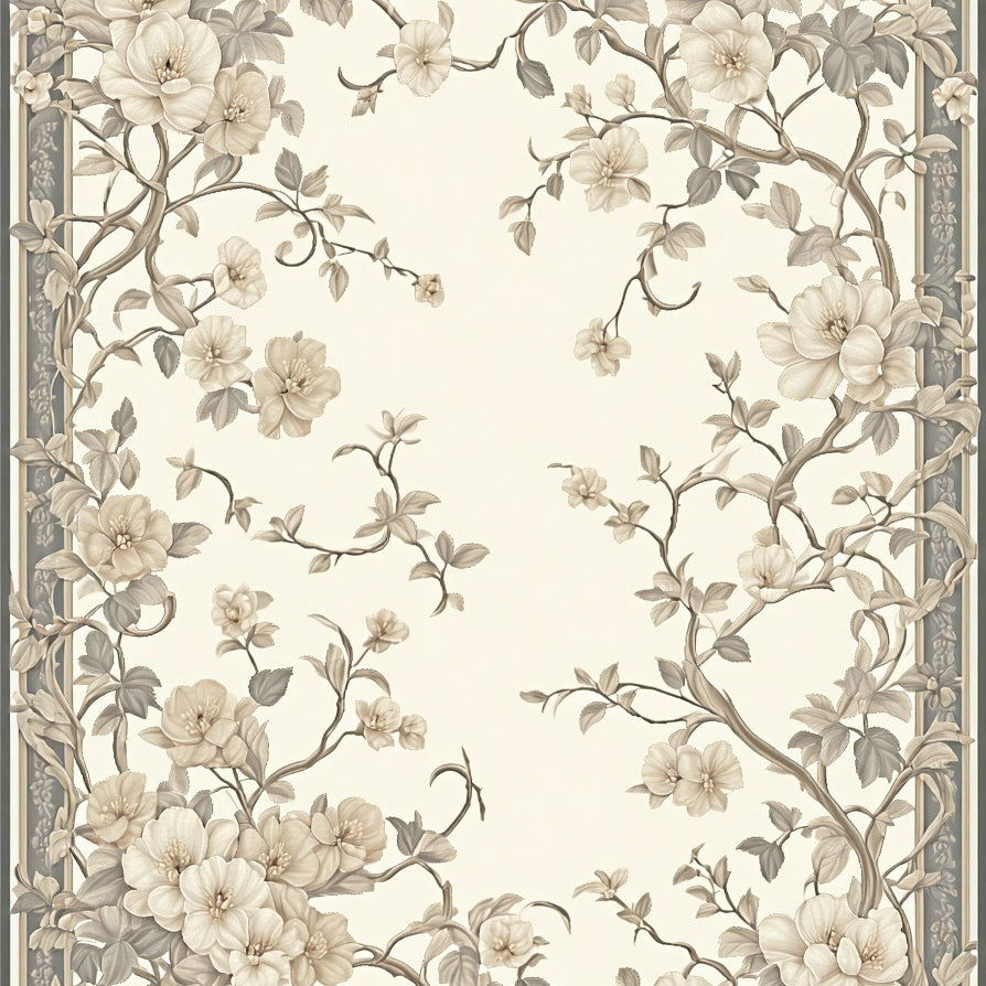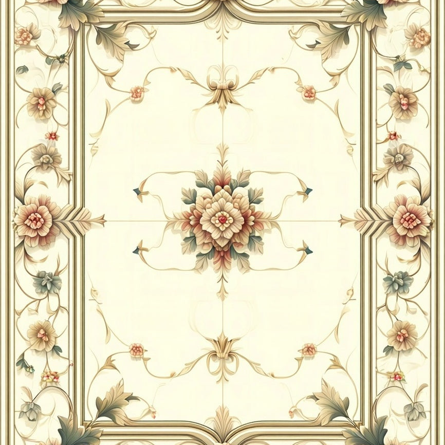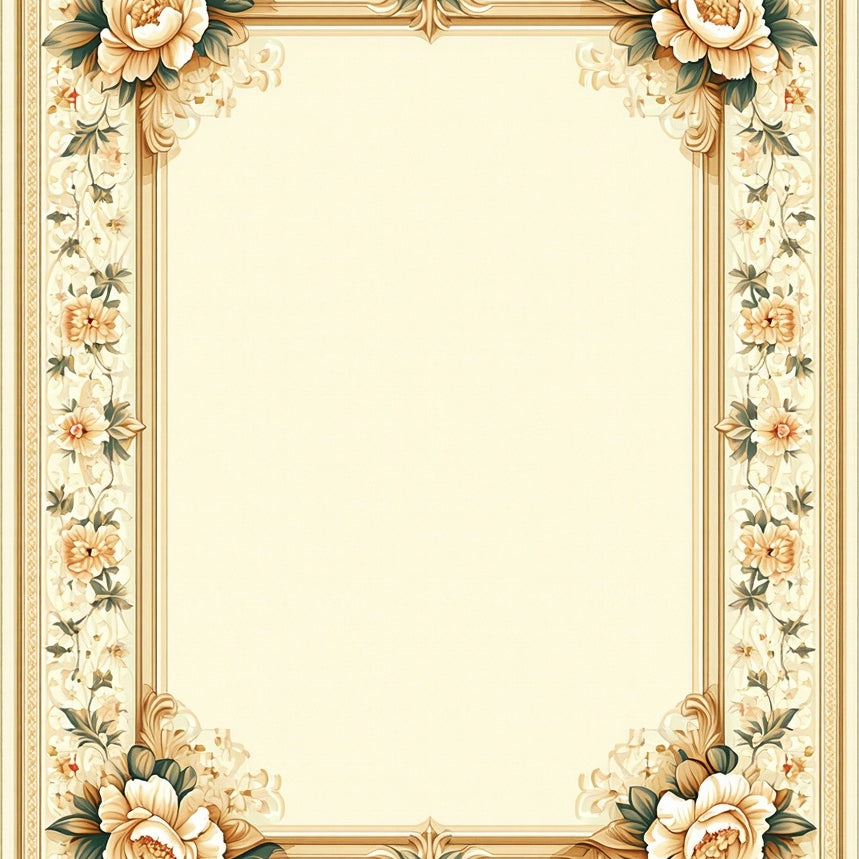 Elegant Beige Floral Border Timeless Geometric Design(Beige)