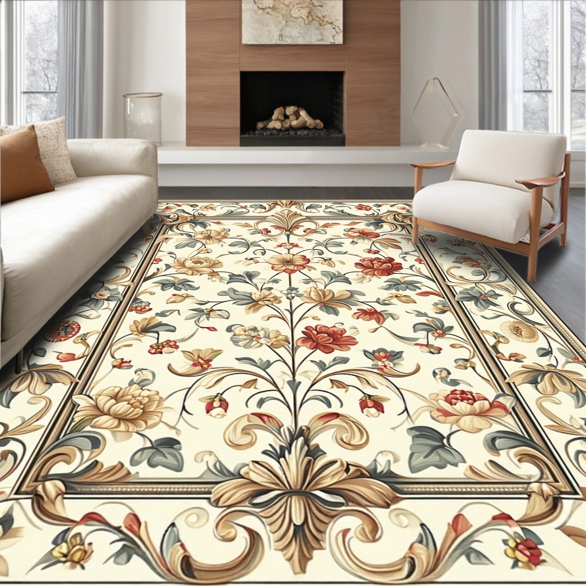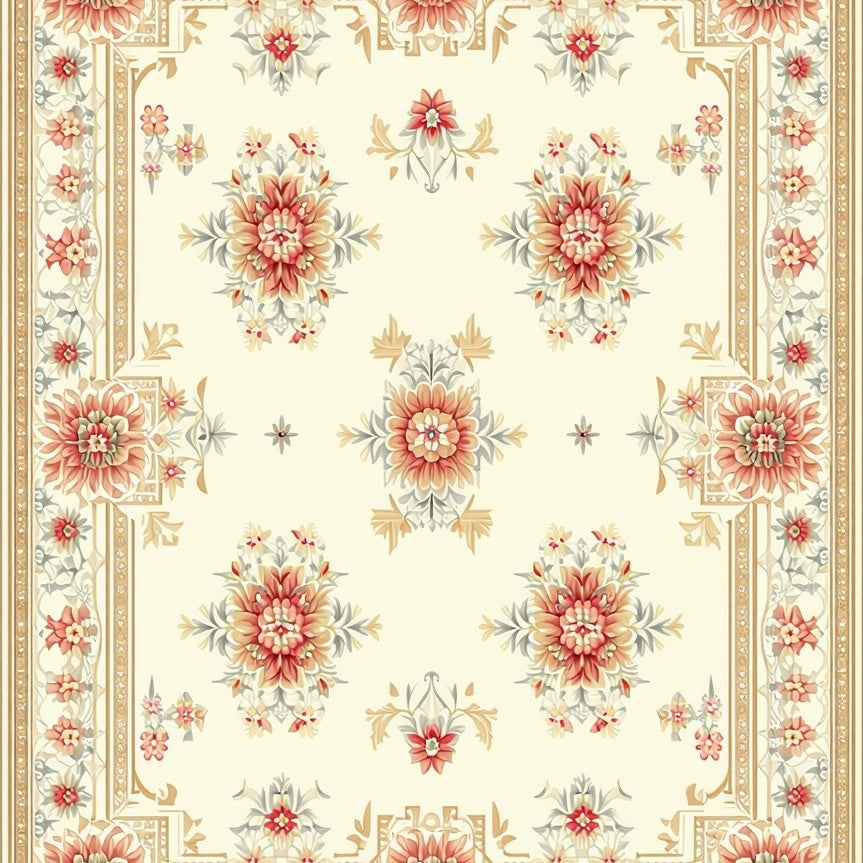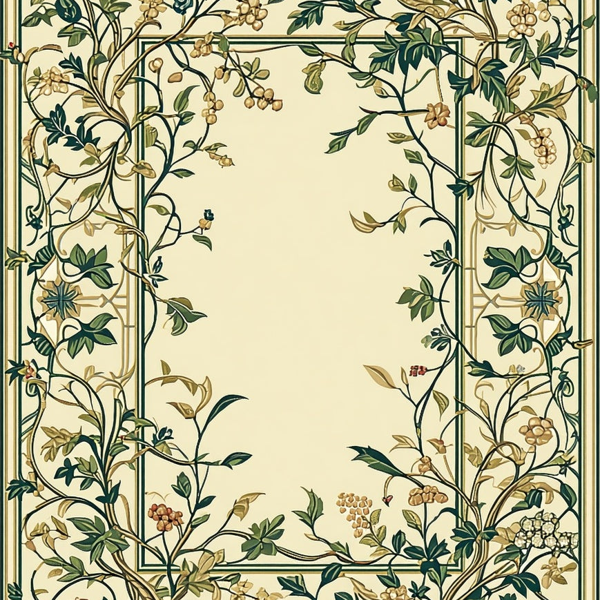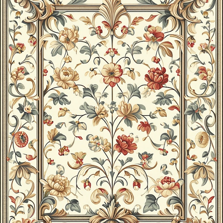 Elegant Beige Floral Border Timeless Geometric Design(Beige)