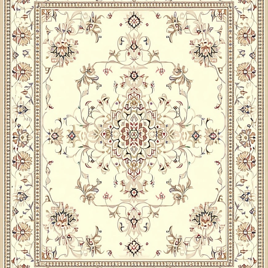 Classic Medallion with Flourishing Vines and Ornate Scrollwork Motifs(Beige)