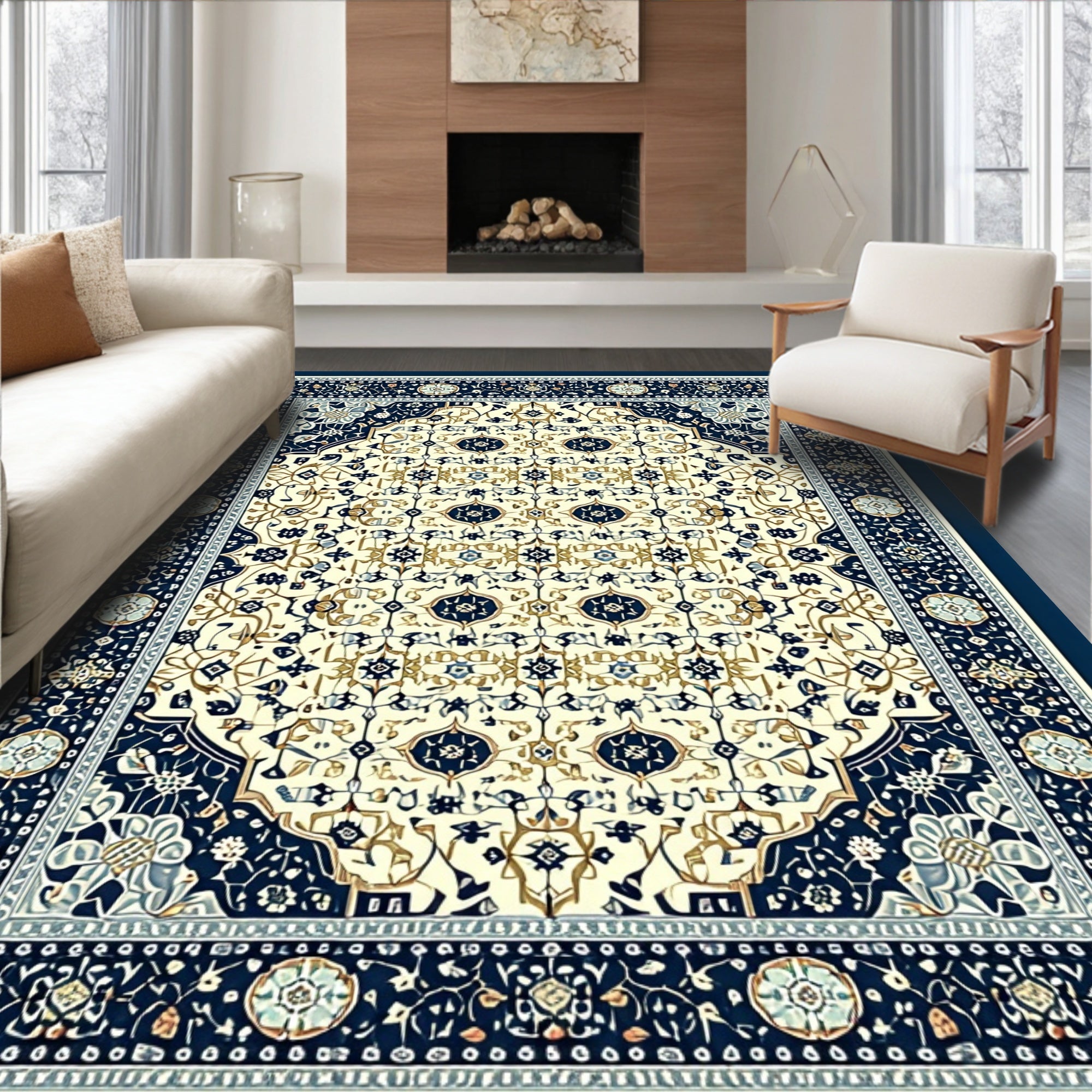 Elegant Floral Medallion in Smoke and Beige Non Shedding(Beige)
