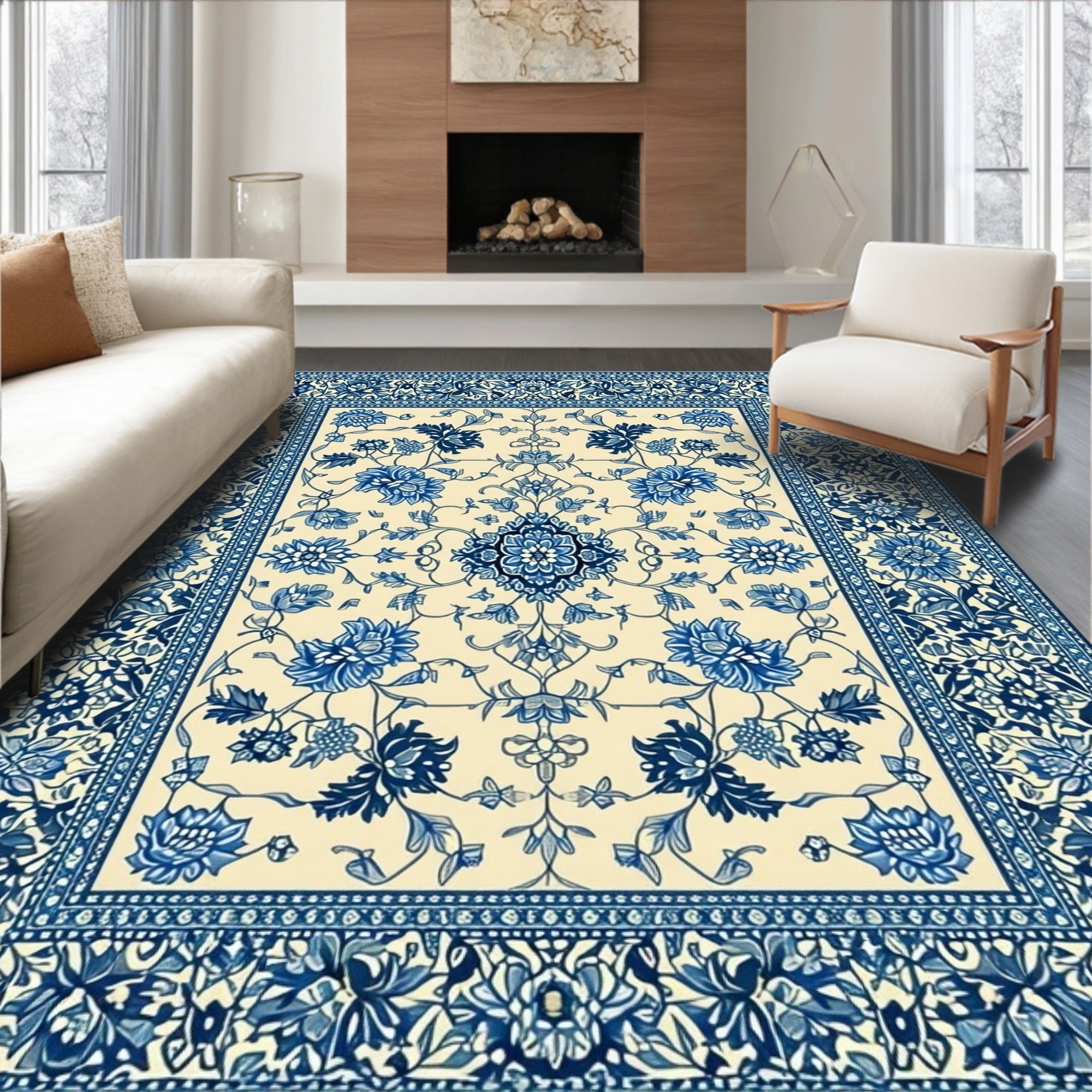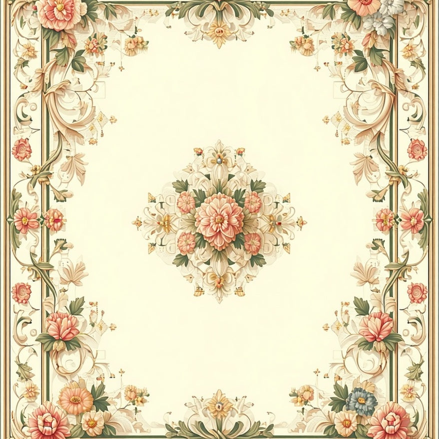 Ornate Garden Bloom Vintage Inspired Floral Motif Floor(Beige)