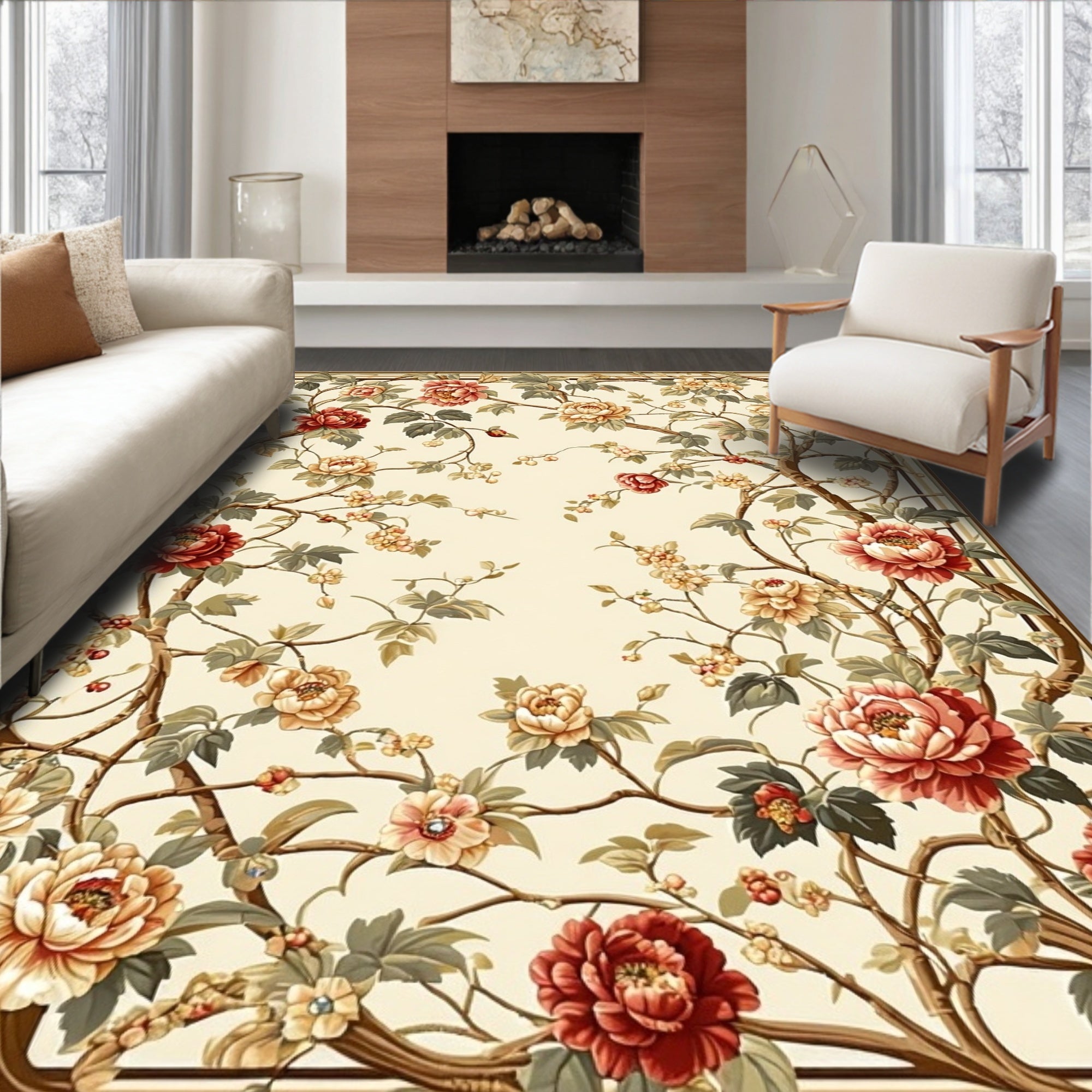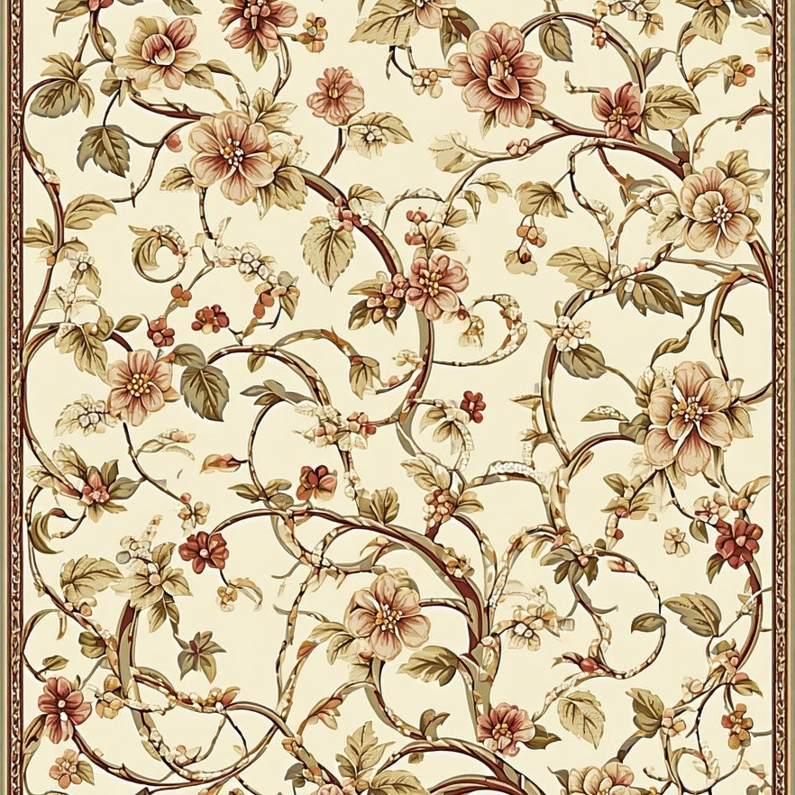 Refined Jacobean Vine Sophisticated Floral Floor Covering(Beige)