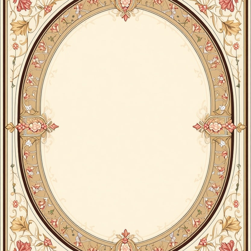 Beige Oval with Subtle Ivory Scrollwork and Floral Details(Beige)