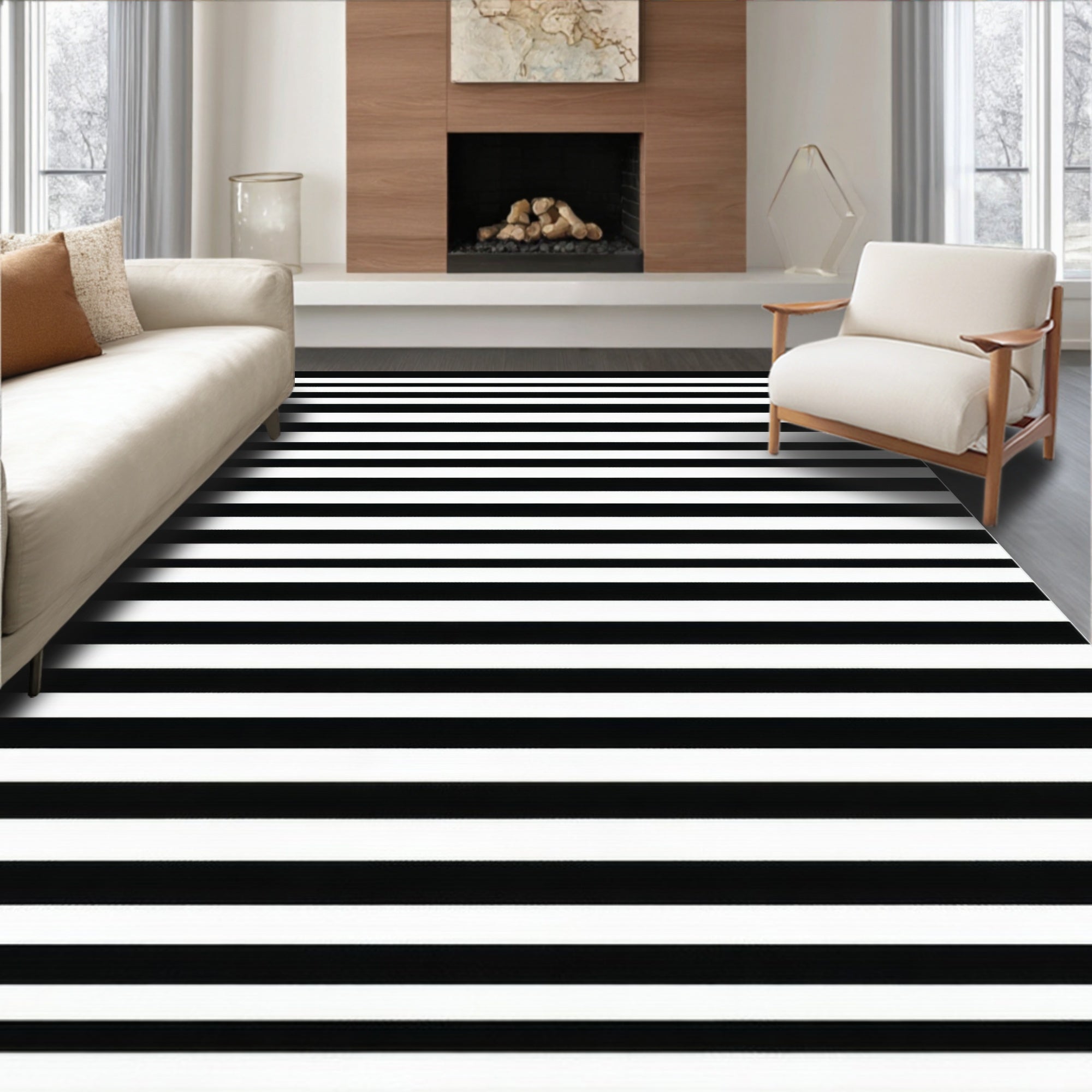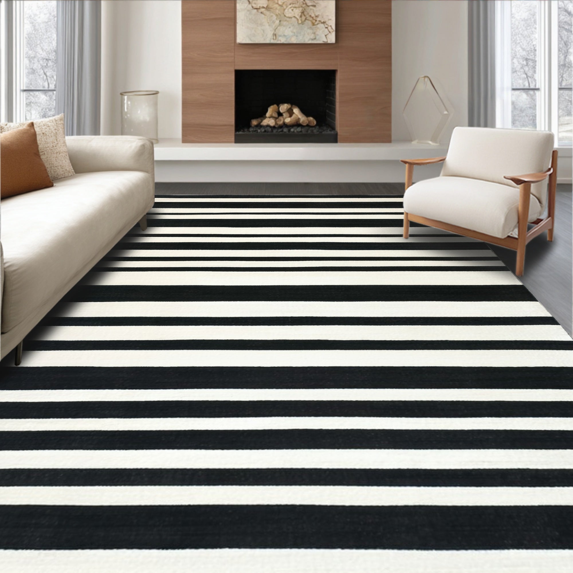 Classic Monochrome Striped with Reversible Farmhouse Design(Black)