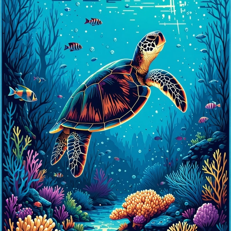 Vibrant Underwater Scene Motif(Blue)