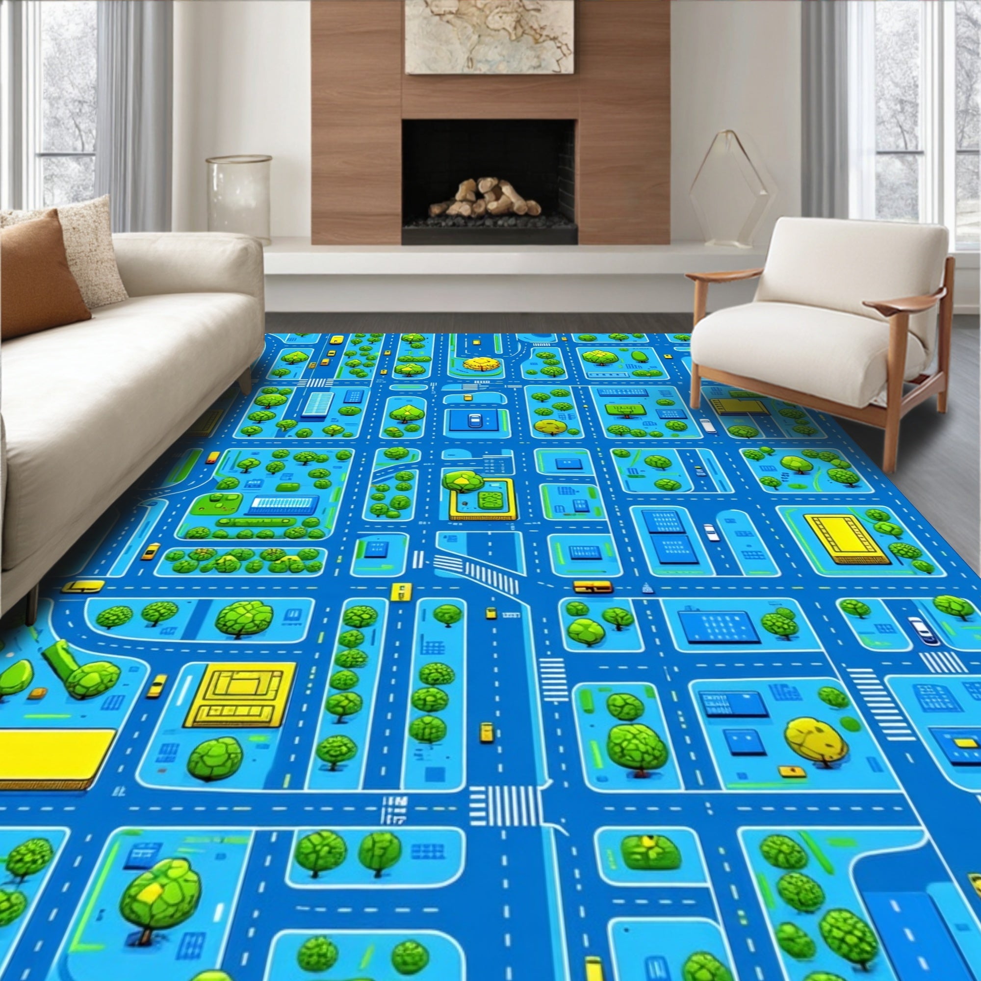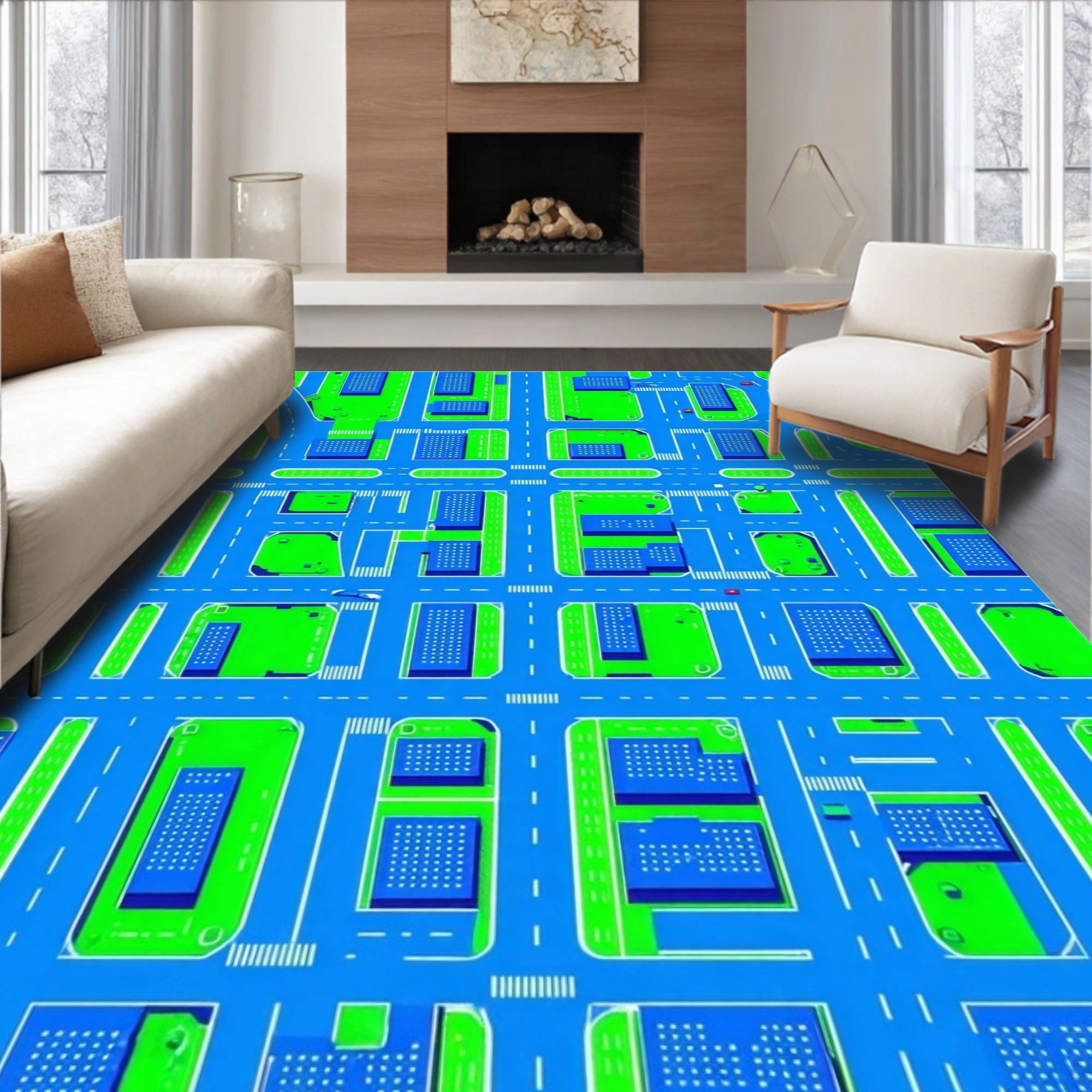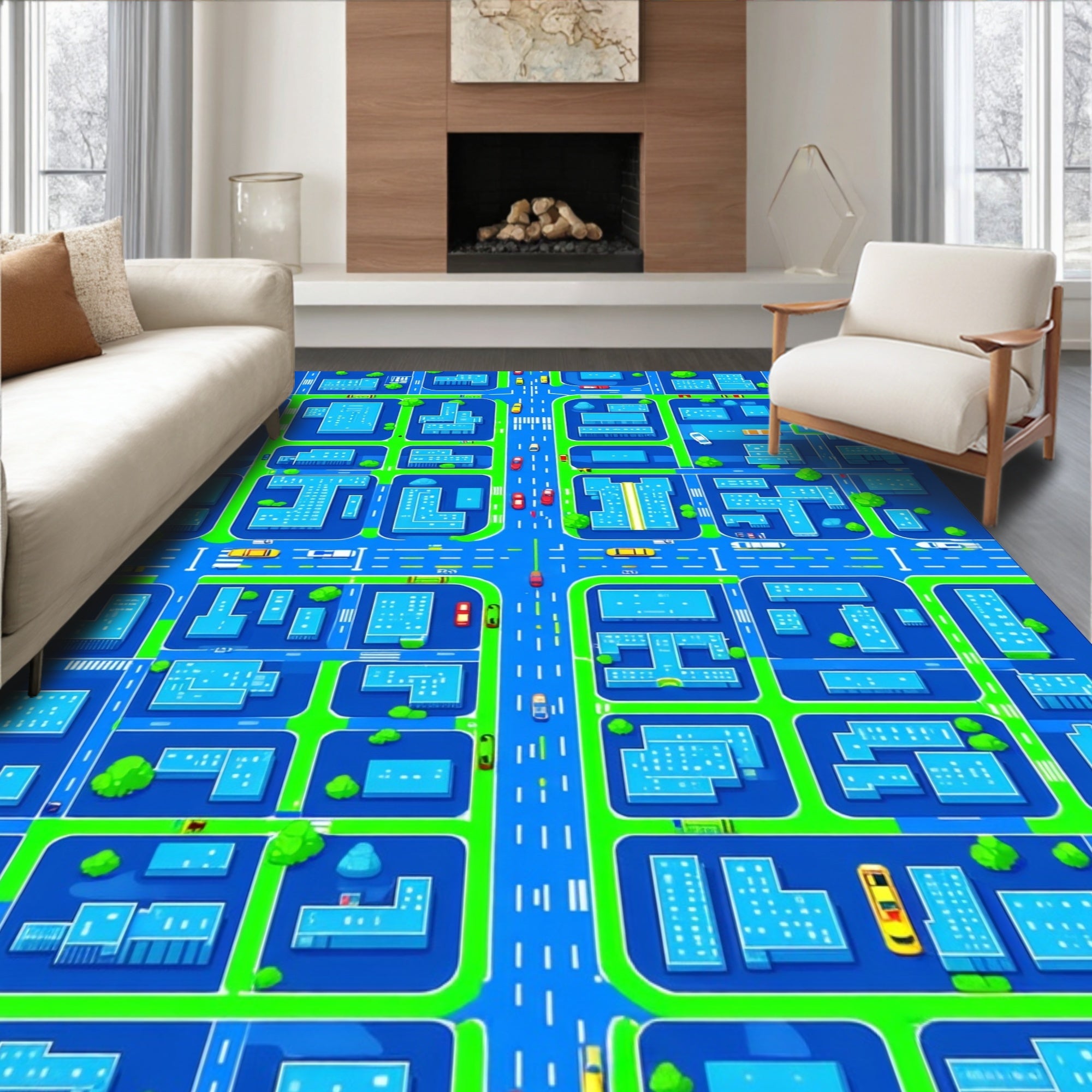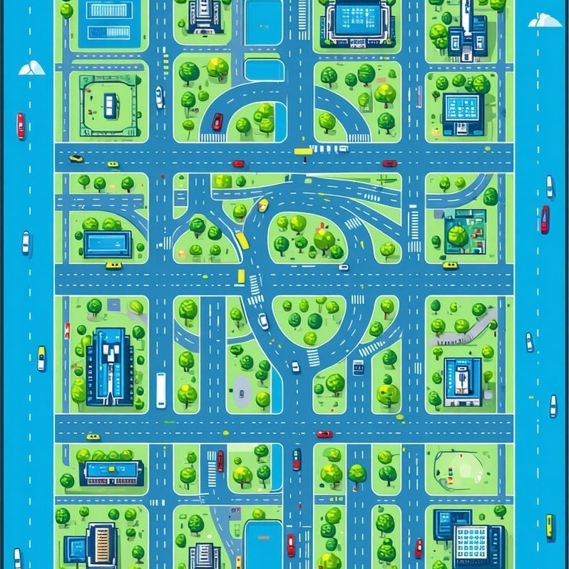 Vibrant Cityscape Patterned Playmat(Blue)