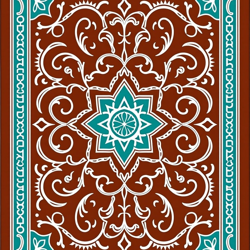 Tile Inspired Doormat with Ornate Medallion Accents(Brown)
