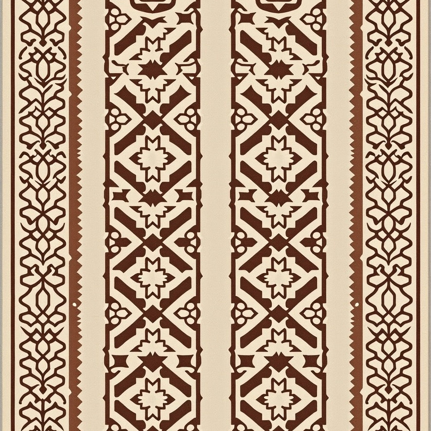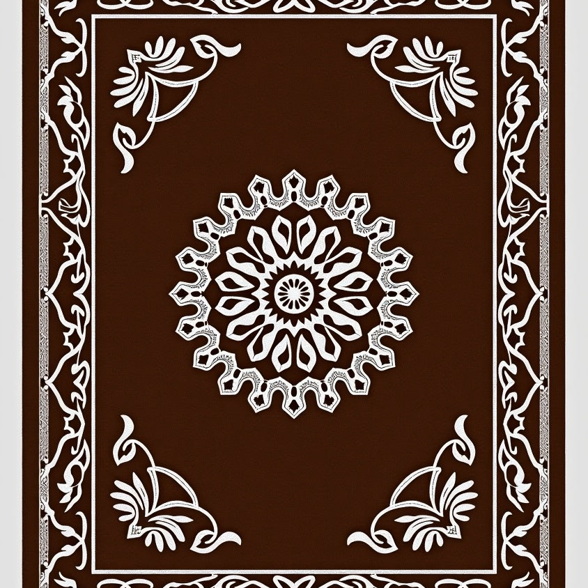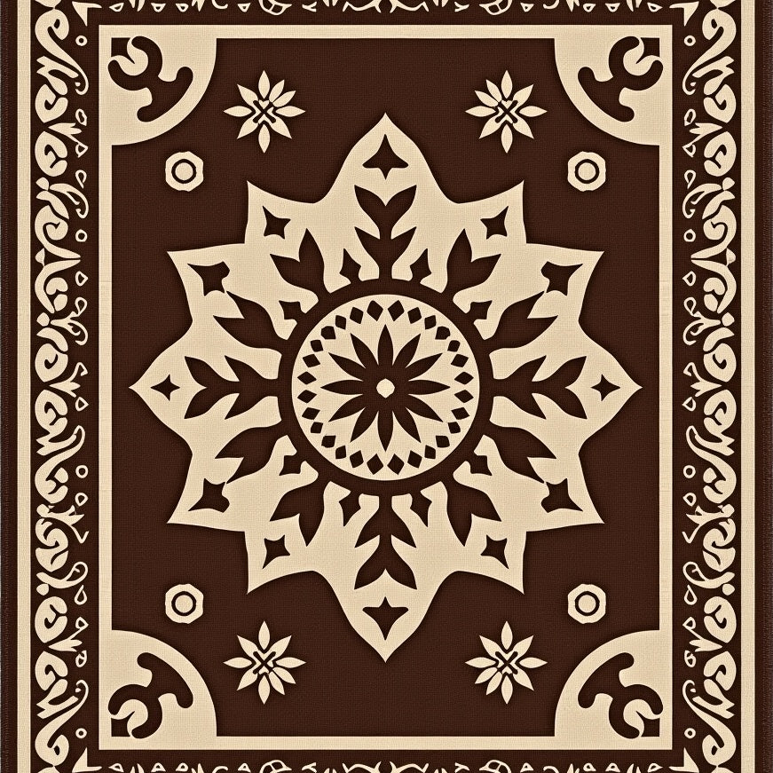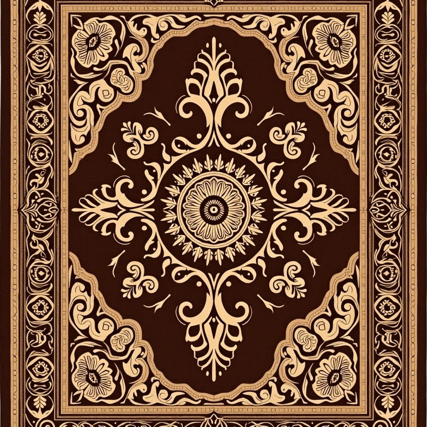 Vintage Boho Medallion Scrollwork with Deep Walnut Flourishes(Brown)
