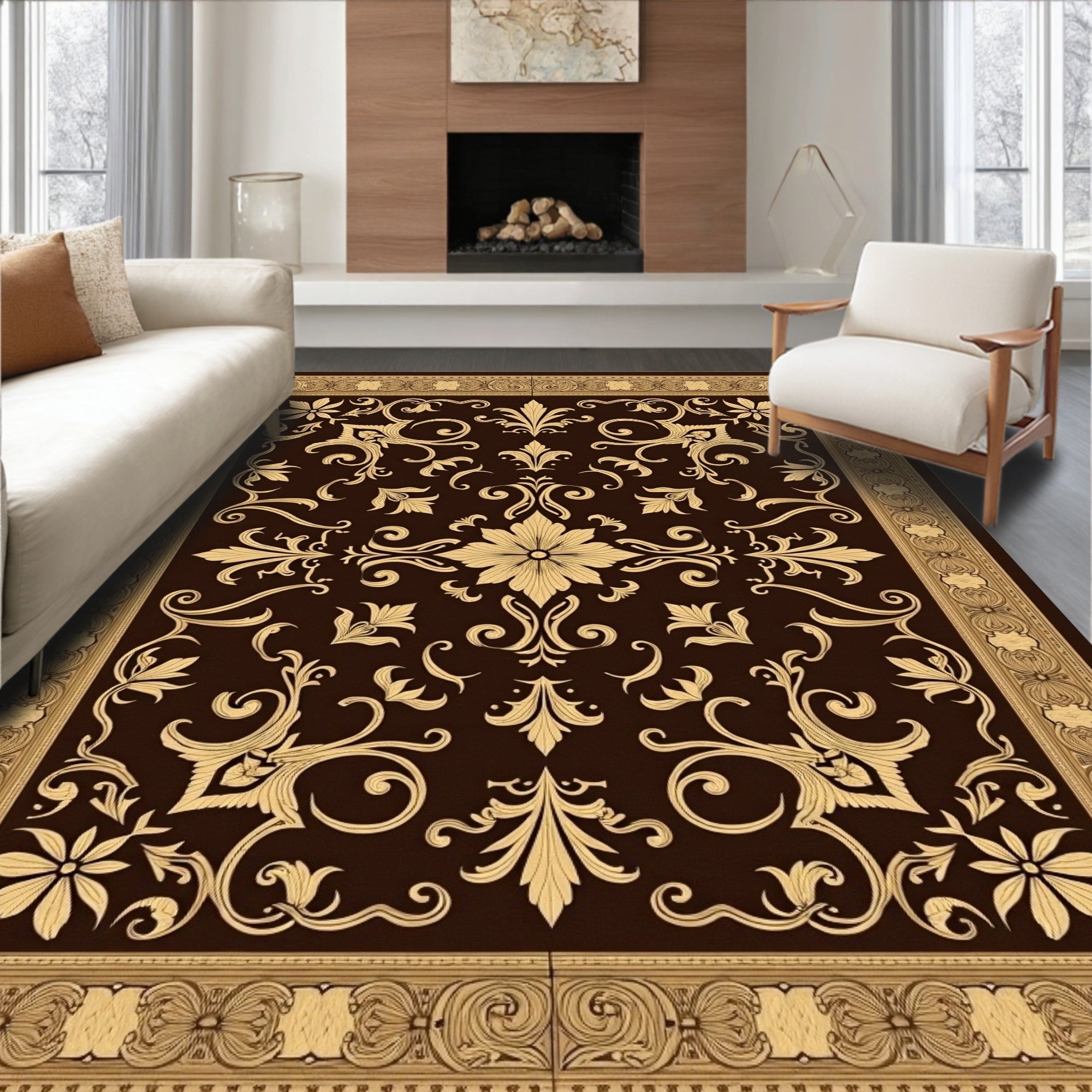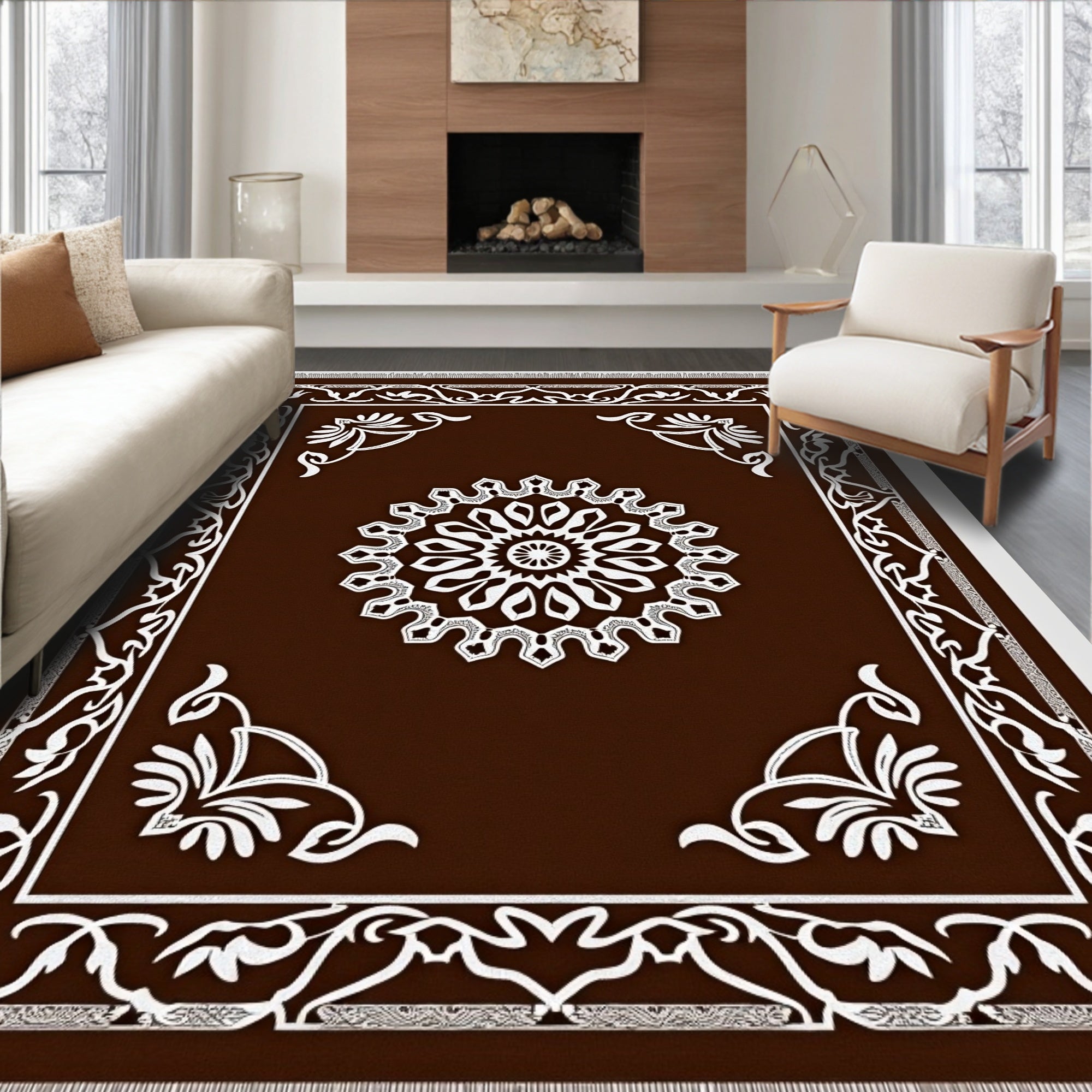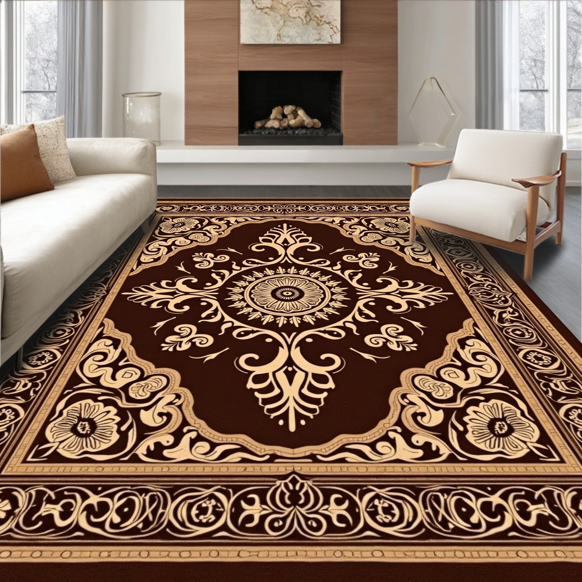 Vintage Boho Medallion Scrollwork with Deep Walnut Flourishes(Brown)