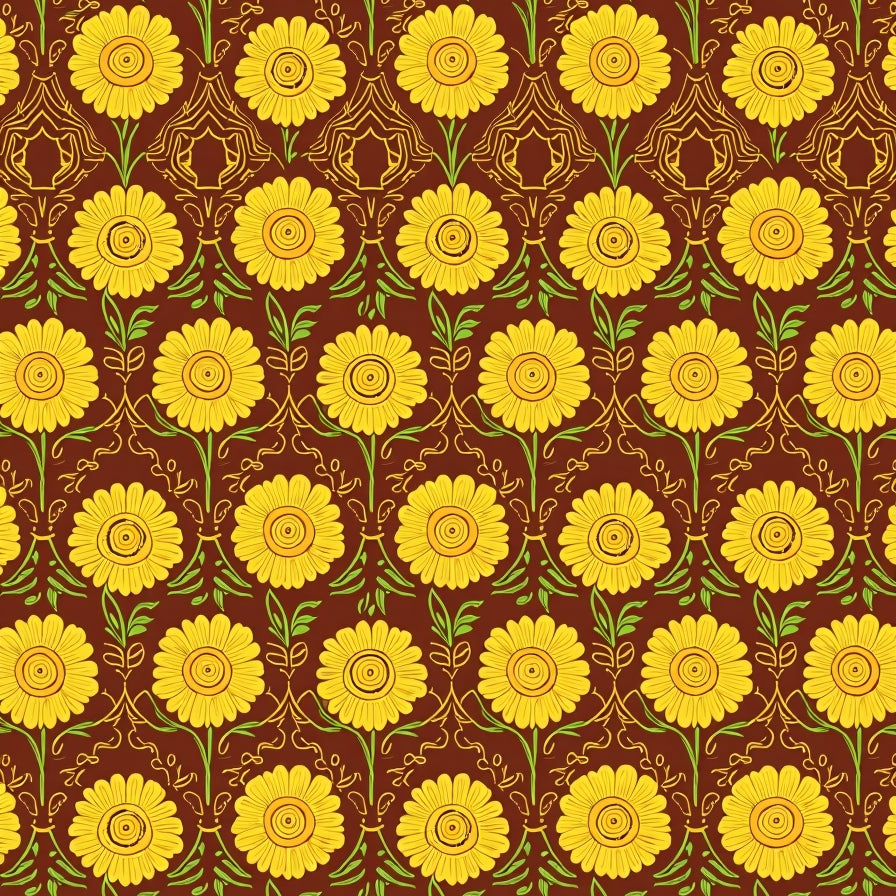 Enchanted Blossom Field with Whimsical Flower Medallions(Brown)