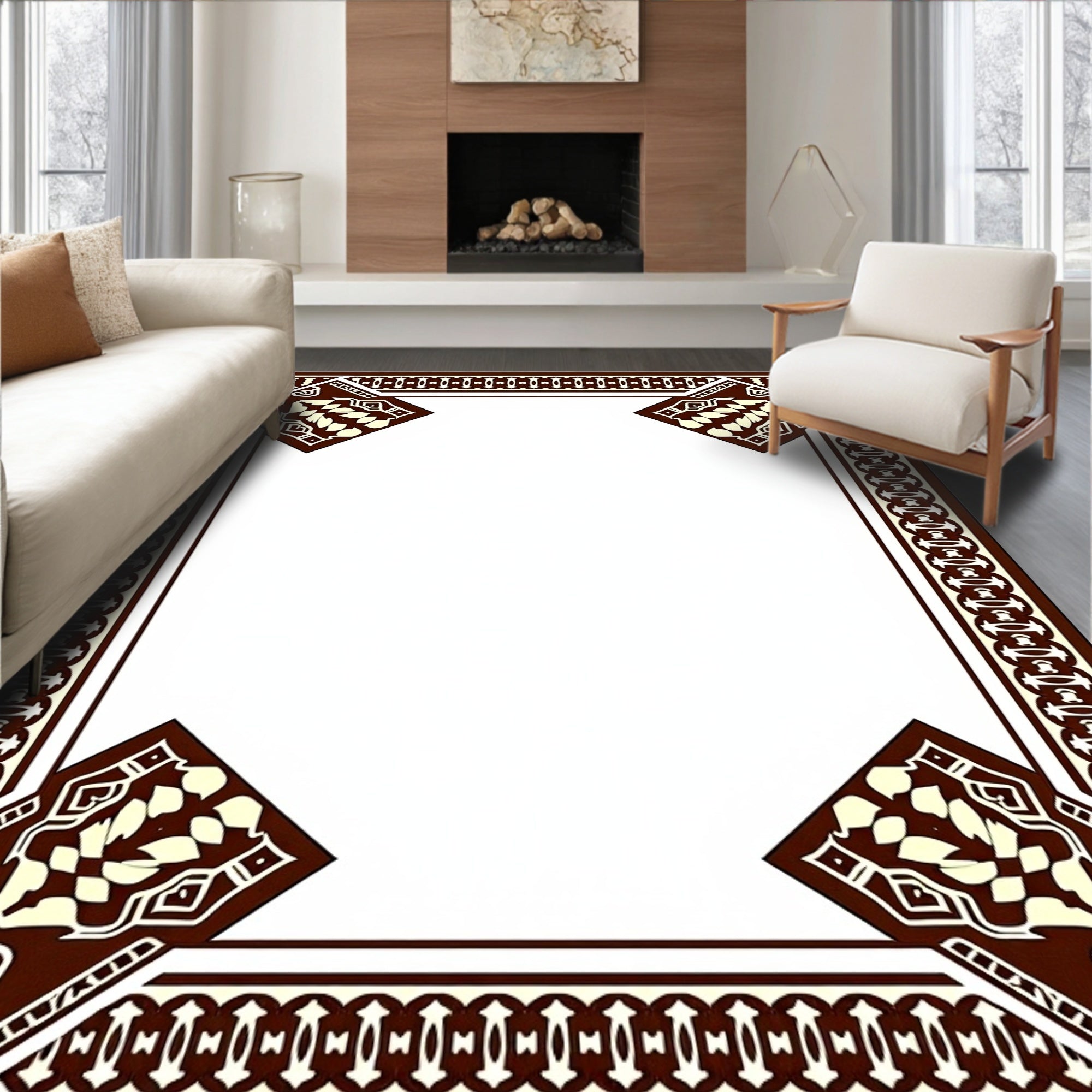 Modern Inspired with Symmetrical Interlocking Motifs(Brown)